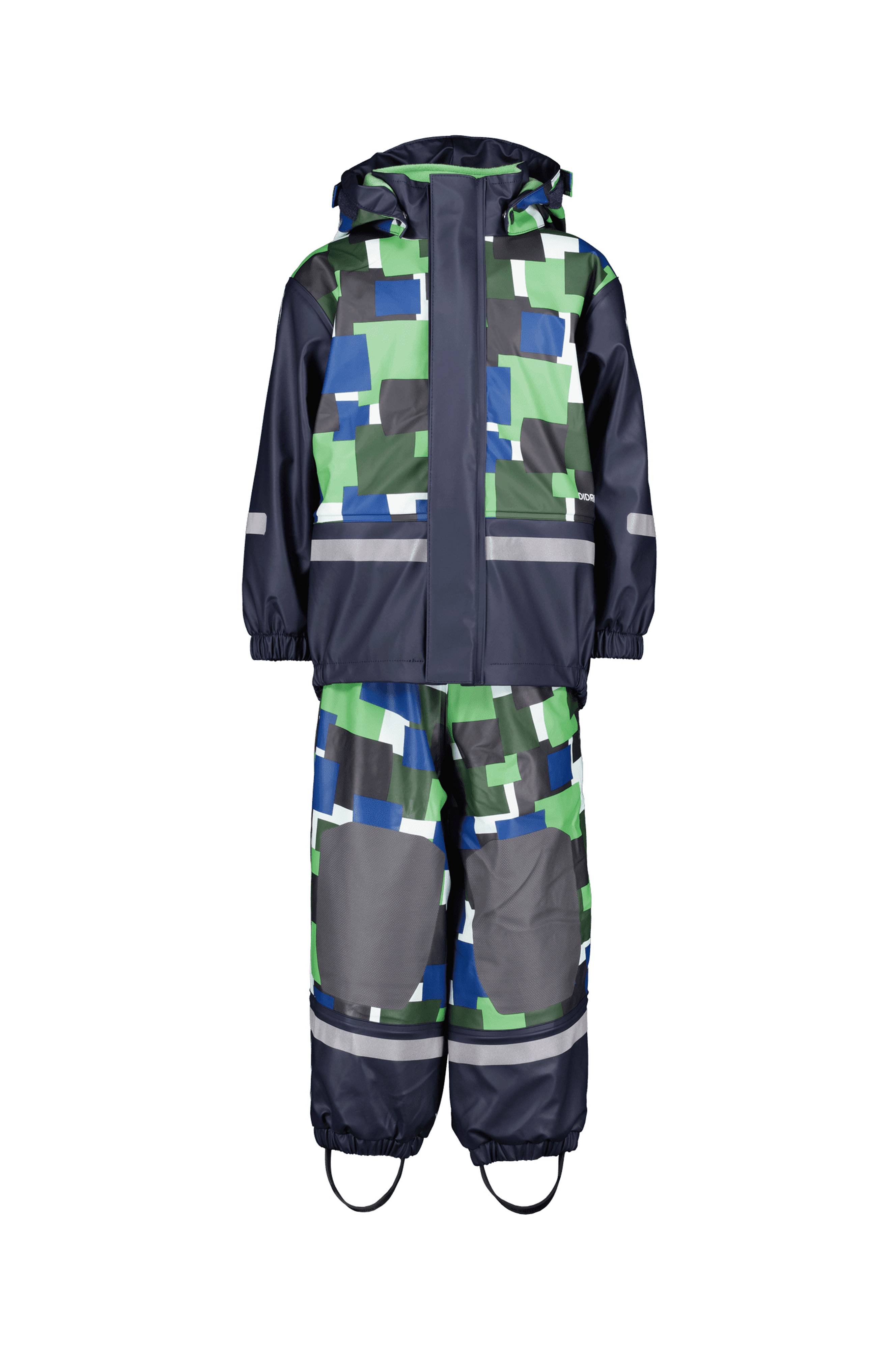 • Vedenkestävä, kaksiosainen setti Galonista fleece-vuorella• Yhteenliitetyt saumat• Irrotettava huppu• Vetoketju suojaavalla tuuliläpällä• Housut yläosalla fleeceestä• Säädettävät henkselit• Jalkaremmit silikonista• Kuminauha hihansuissa, lahkeiden lopuissa ja sivuilla• Vahvike polvilla• Heijastavat yksityiskohdat• Vesipatsas 8 000 mm