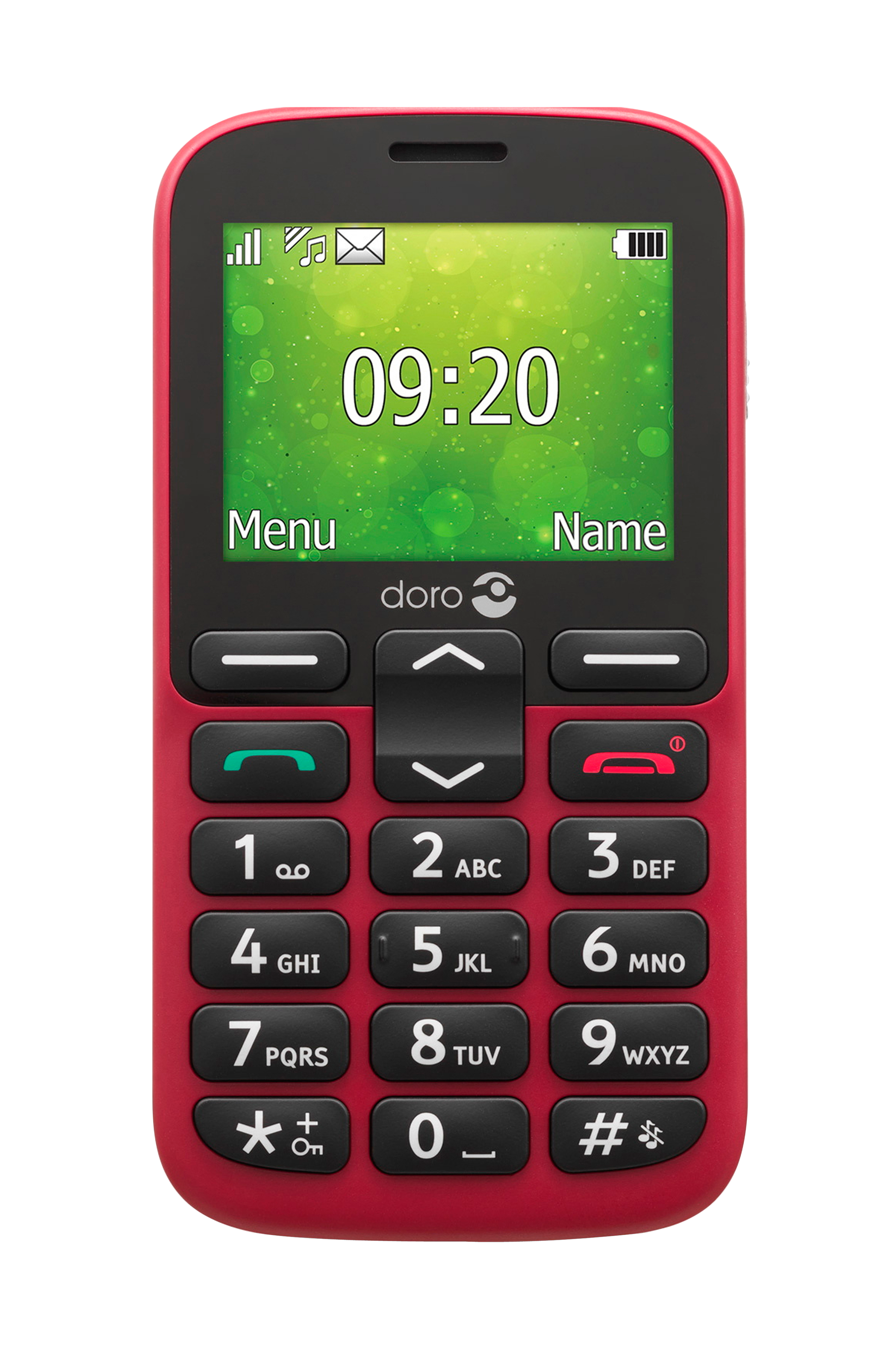 Helppokäyttöinen leveänäyttöinen 2G-matkapuhelin, jossa erillään olevat painikkeet.