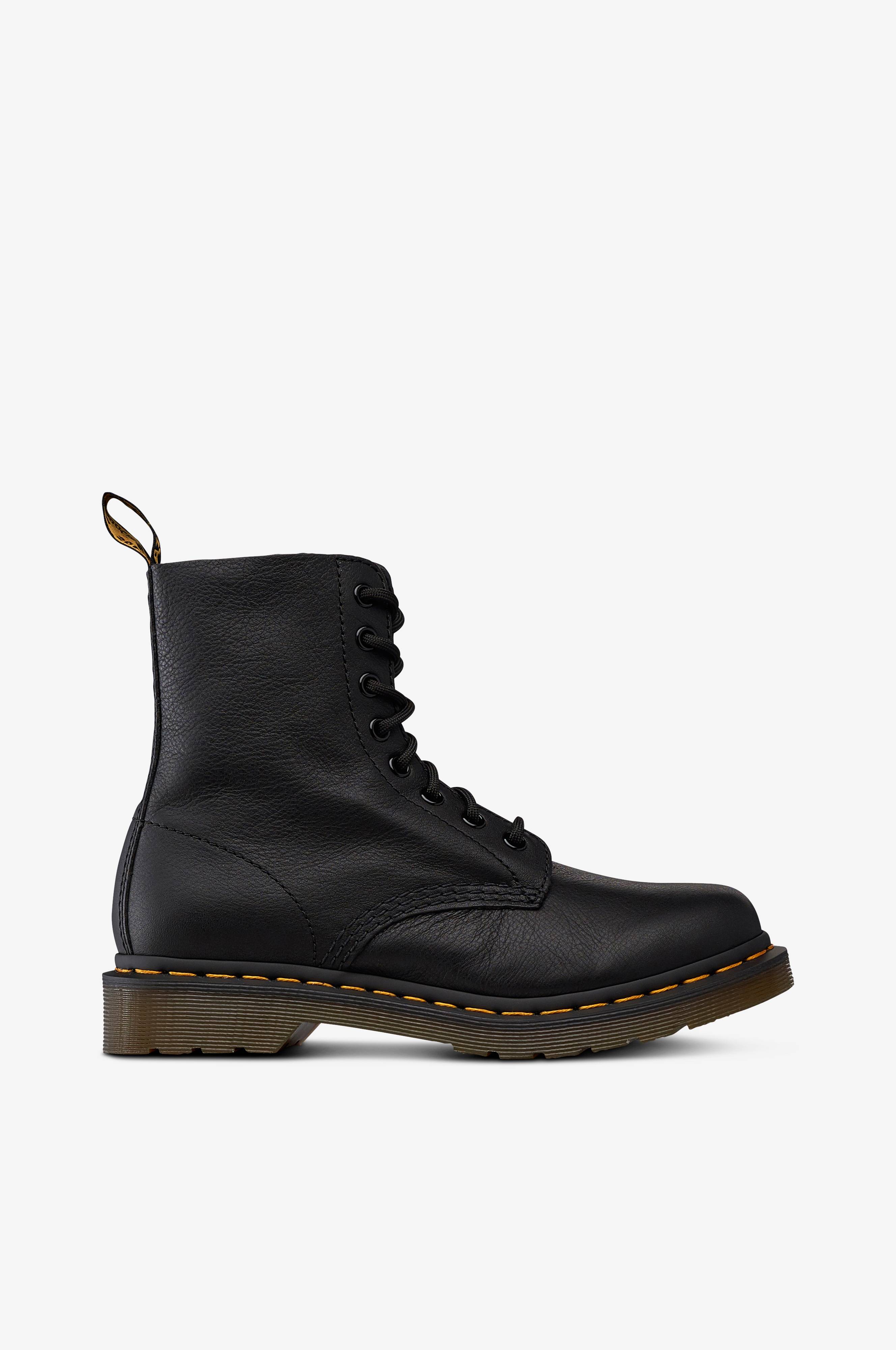 Dr Martens Pascal 1460 Virginia -nilkkurit. Klassikko mattapintaista nahkaa. Nyöritys. Paksu keltainen sauma pohjan reunassa. Vetolenkki takana varressa. Paksu kumipohja. Vuoriton varsi, terässä kangasvuori. Varren korkeus n. 16 cm. Koron korkeus n. 3,5 cm.