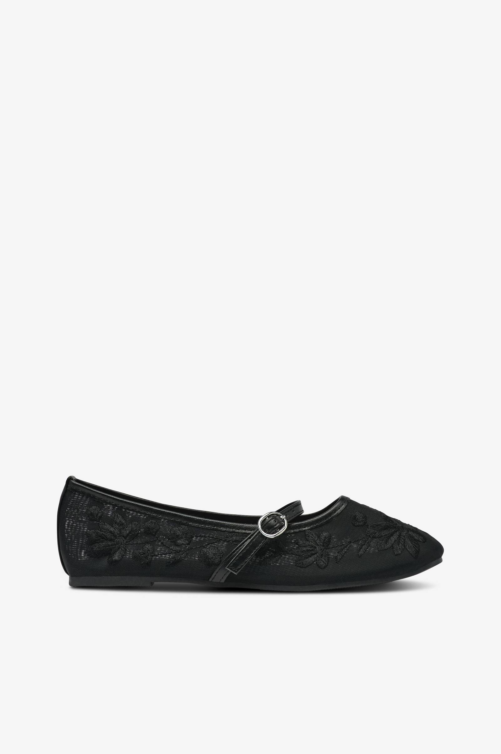 • Ballerinat verkkokankaasta koristeellisella kirjonnalla• Säädettävä hihna jalan yläpuolella• Pehmeästi vuorattu sisäpohja