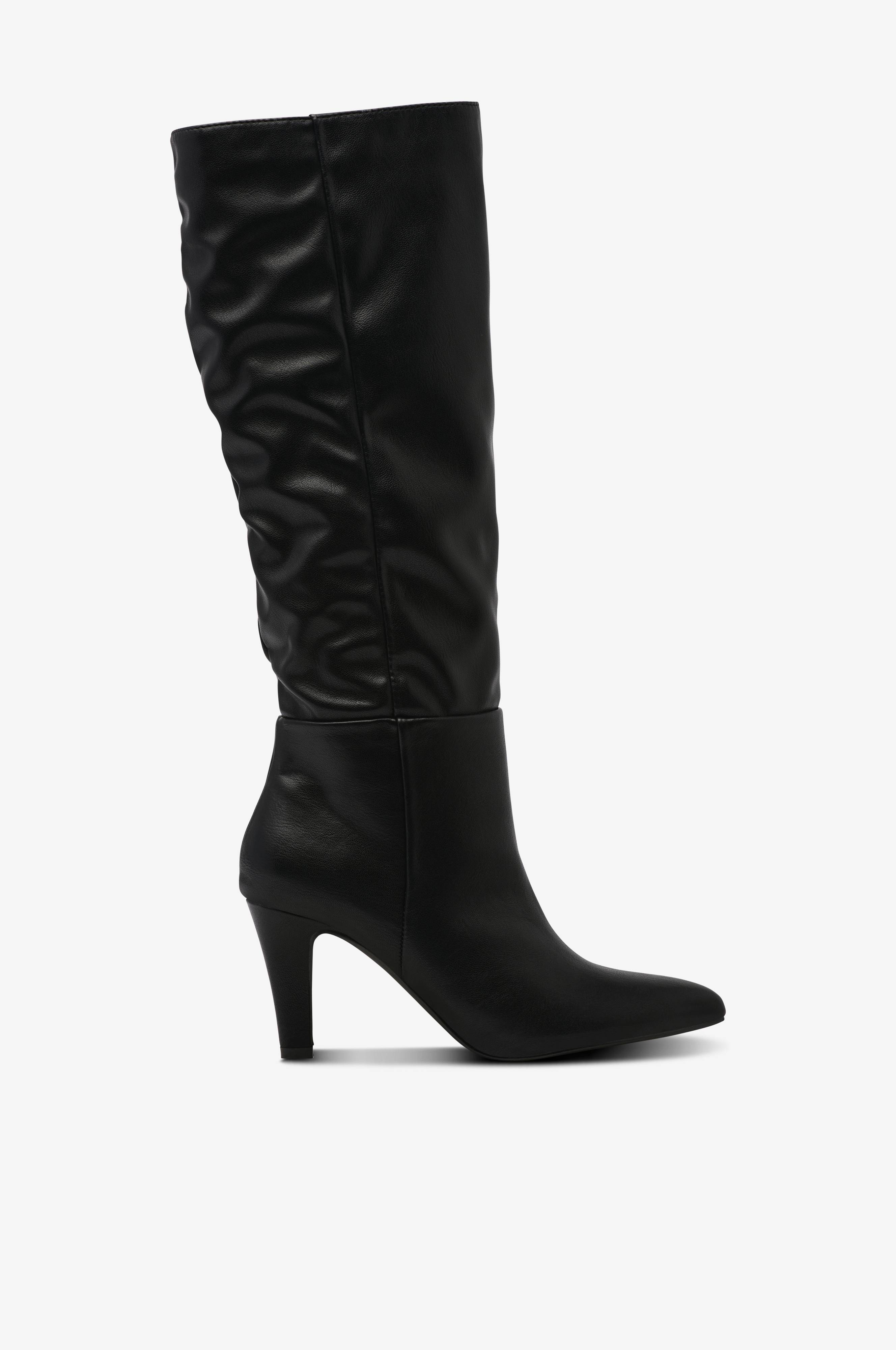 • Korkeat saappaat• Poimutettu varsi• Terävä kärki• Korkea, ohut korko• Lyhyt vetoketju nilkassa• Varren korkeus: 37 cm koossa 37• Koron korkeus: 8 cm