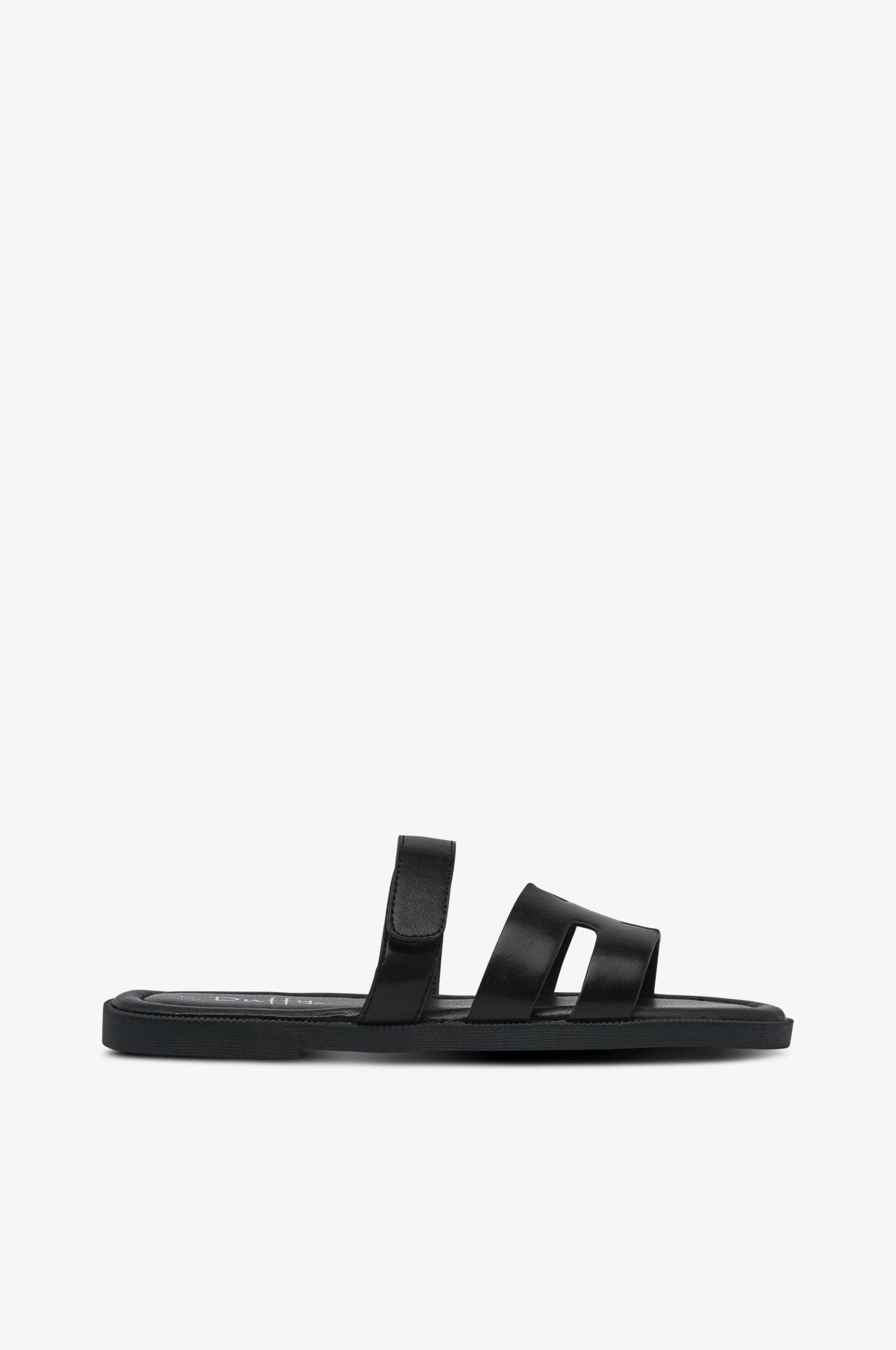 • Sandaalit keinonahasta• Leveä hihna jalan yläpuolella• Säädettävä nilkkaremmi• Pehmeästi vuorattu sisäpohja• Ulkopohja kumista
