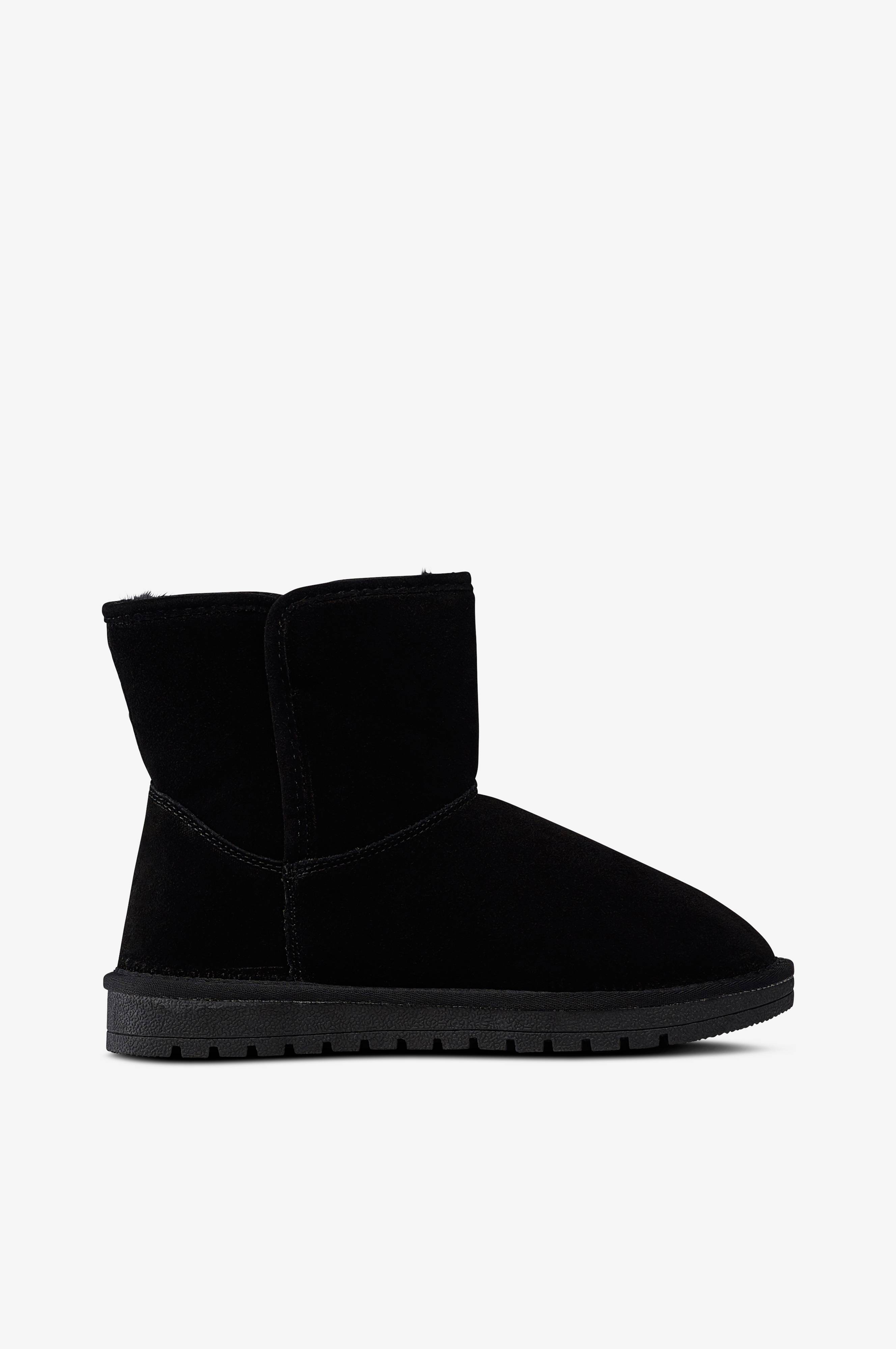 Duffy-talvisaappaat. Ihanan pehmeä tekoturkisvuori koko kengässä. Mokkapäällinen, jossa halkio varren molemmilla sivuilla. Kangasreunus pohjan reunassa. Paksu ja joustava pohja eristää maasta huokuvaa kylmää.