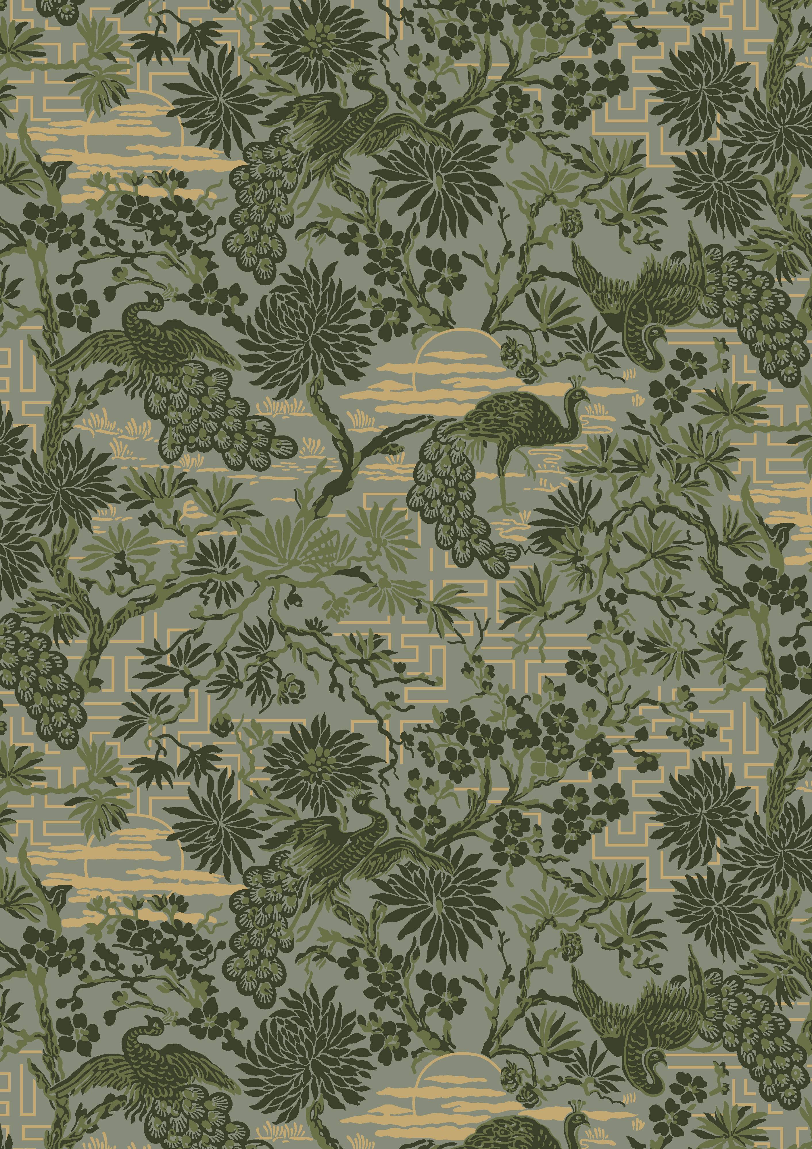 Brunnsgatan-tapettinäyte, vihreä.Näytepalan koko on n. 210 x 297 mm (A4-sivun kokoinen).