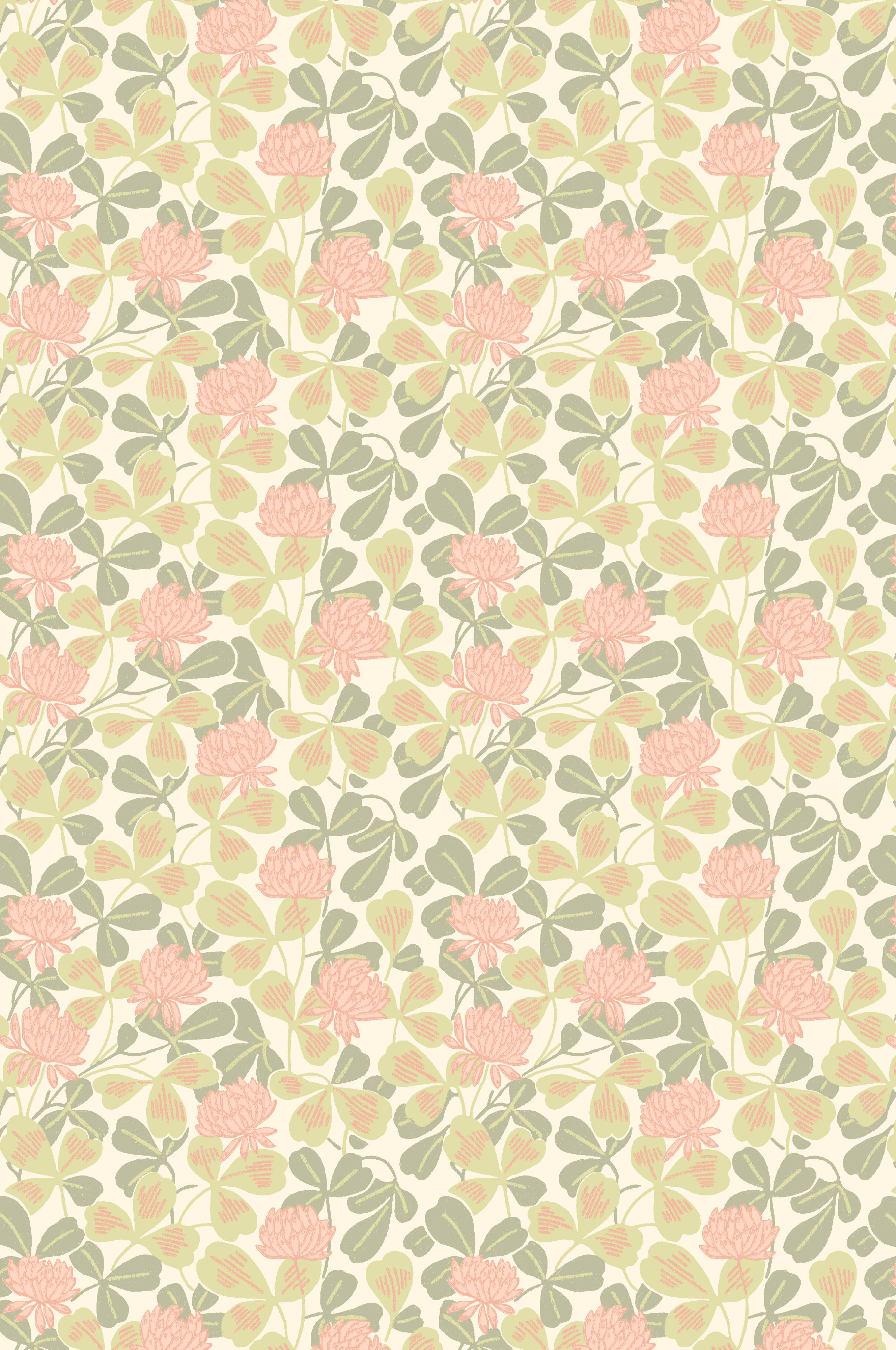 Klöver-tapettinäyte, roosa.Näytepalan koko on n. 210 x 297 mm (A4-sivun kokoinen).