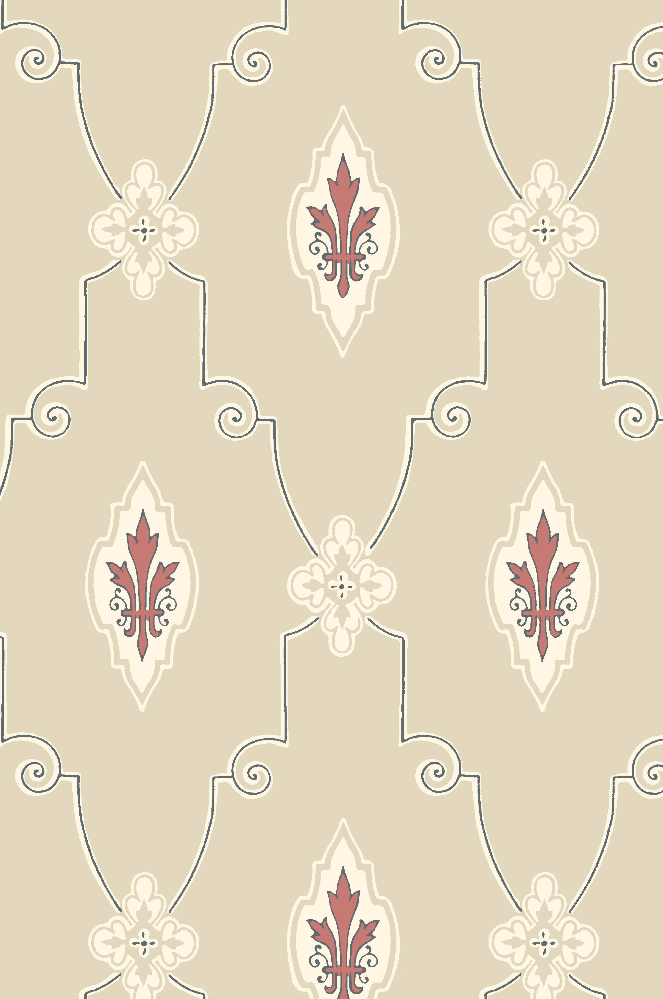 Liljesal-tapettinäyte, punainen.Näytepalan koko on n. 210 x 297 mm (A4-sivun kokoinen).