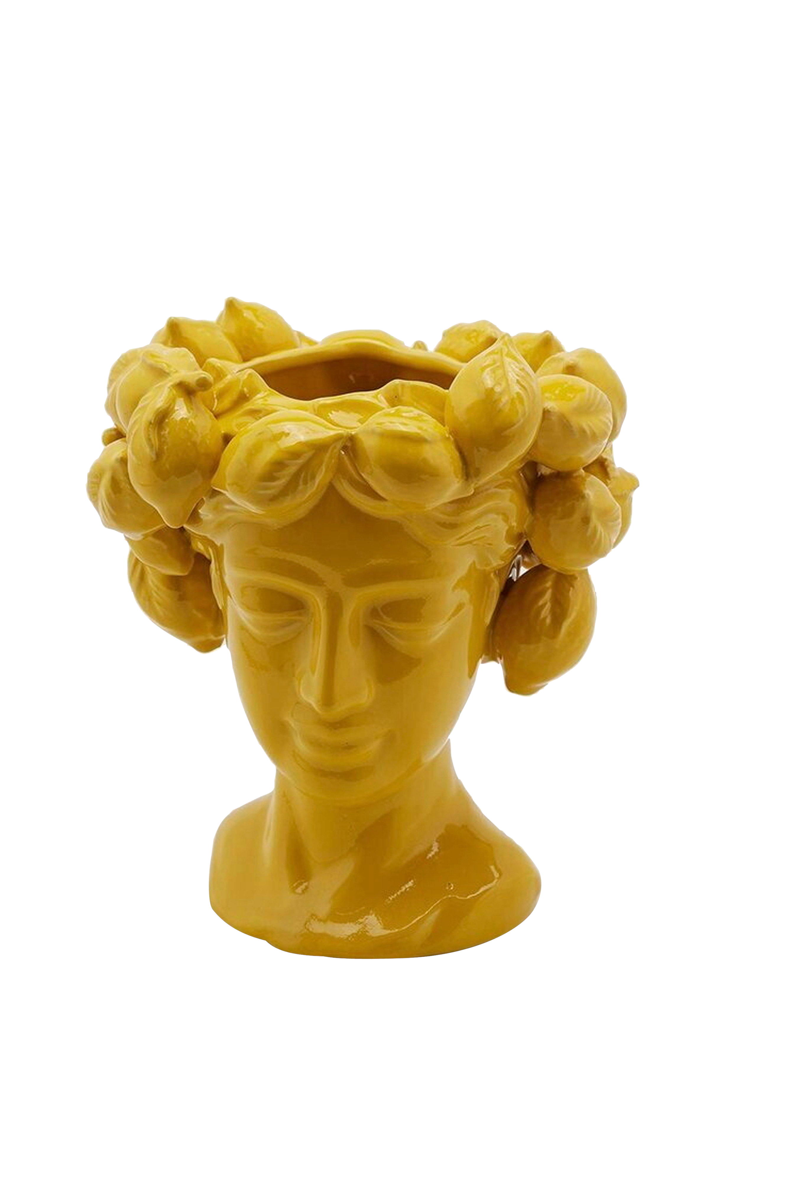 Tässä ainutlaatuisessa sisilialaisessa keramiikasta valmistetussa ja eloisilla sitruunoilla koristellussa maljakossa yhdistyvät perinteinen käsityötaito ja rohkea muotoilu. Se on 28 cm korkea ja halkaisijaltaan 26 cm, joten se on näyttävä ja taiteellinen kannanotto mihin tahansa huoneeseen.