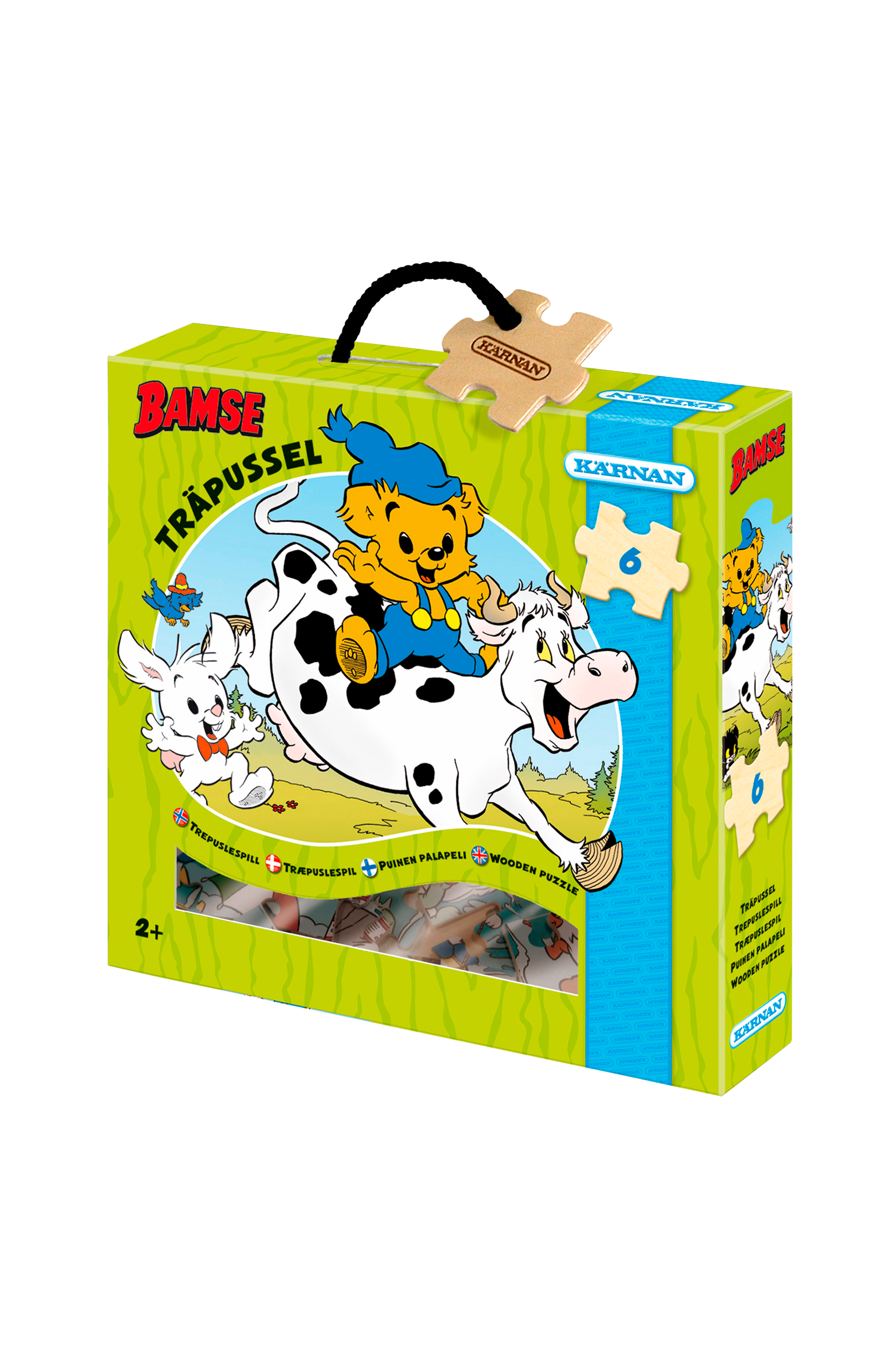 Kärnan-puupalapeliBamse-puupalapeli rasiassa, 6 palaa.