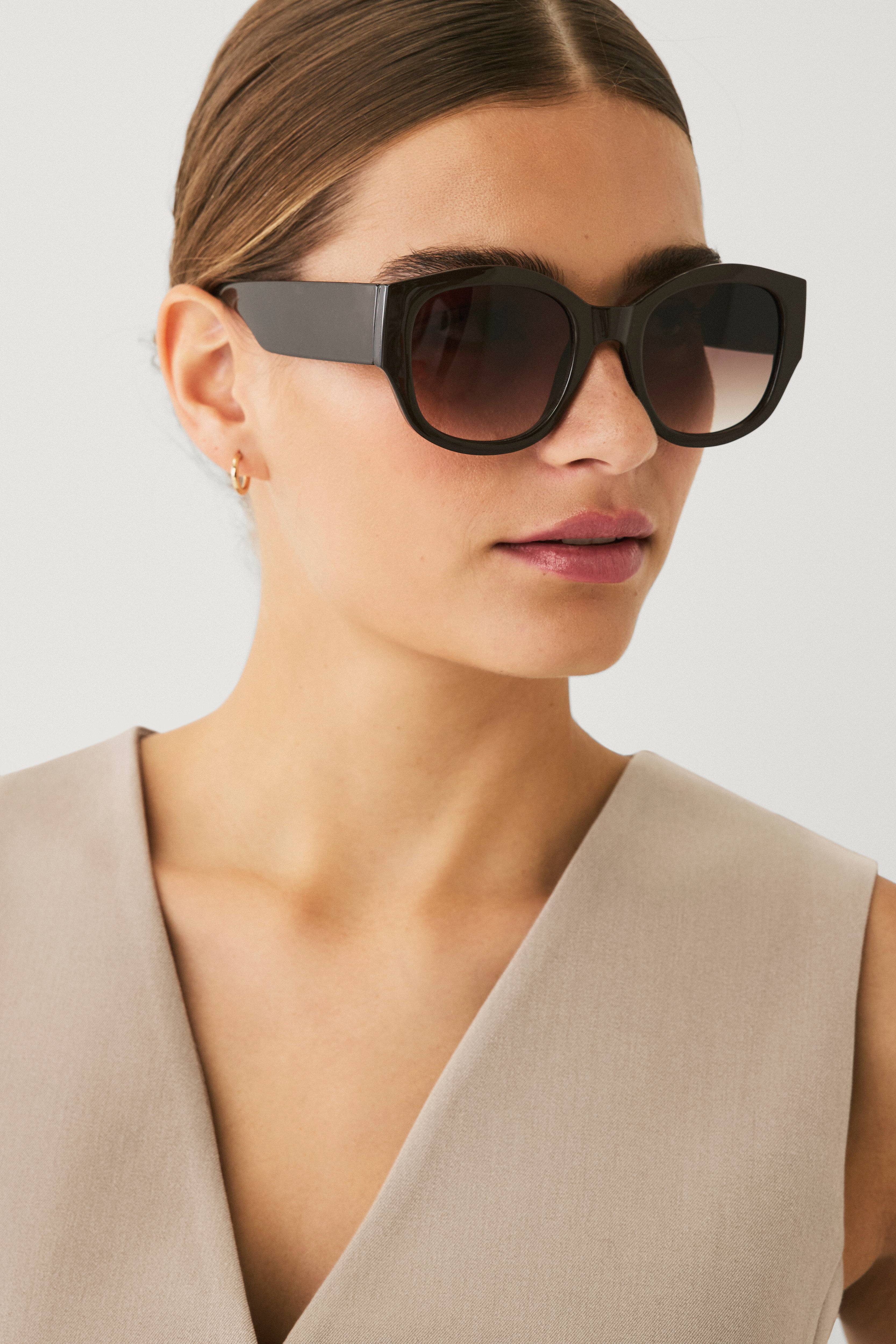 Tyylikkäät aurinkolasit, mutta terävät/tiukat korvien takana - joten pitkään käytettynä ne ovat epämukavat päällä.
