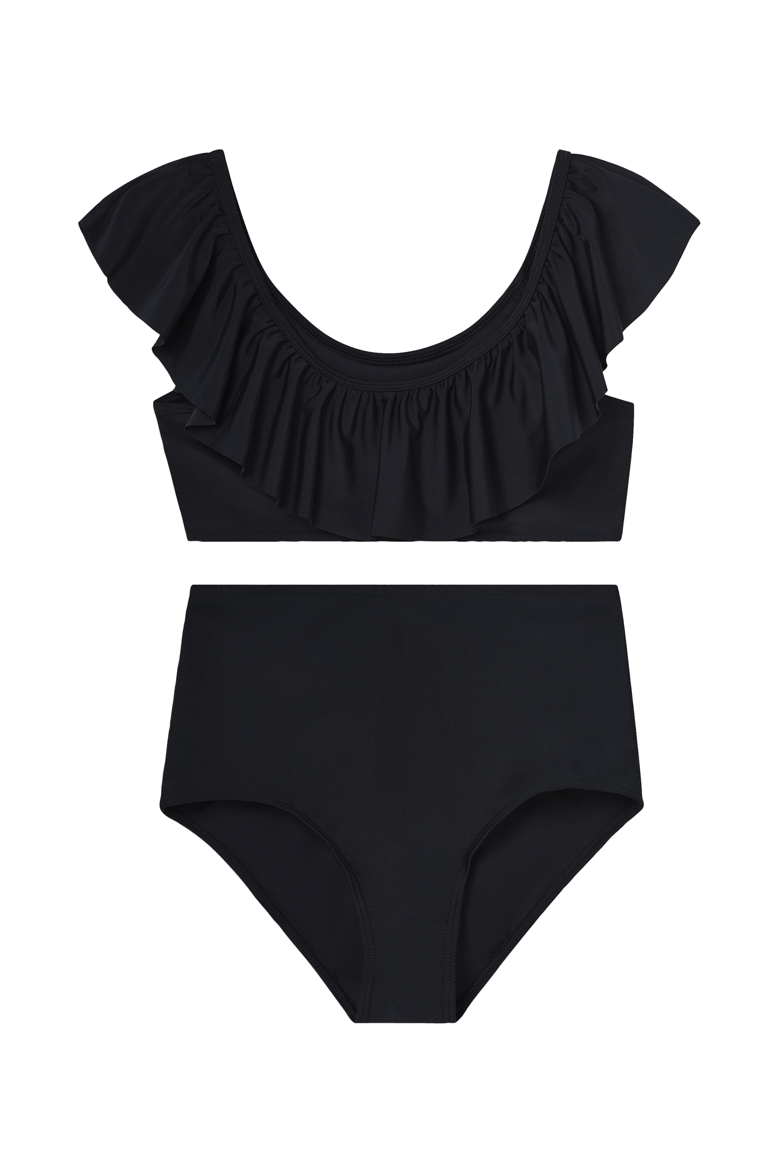• Täysin vuoratut, kaksiosaiset bikinit• Bikinirintaliivit leveällä röyhelöllä ylhäällä ja kuminauhalla alahelmassa• Bikinin alaosa hipster-mallilla leveillä sivuilla