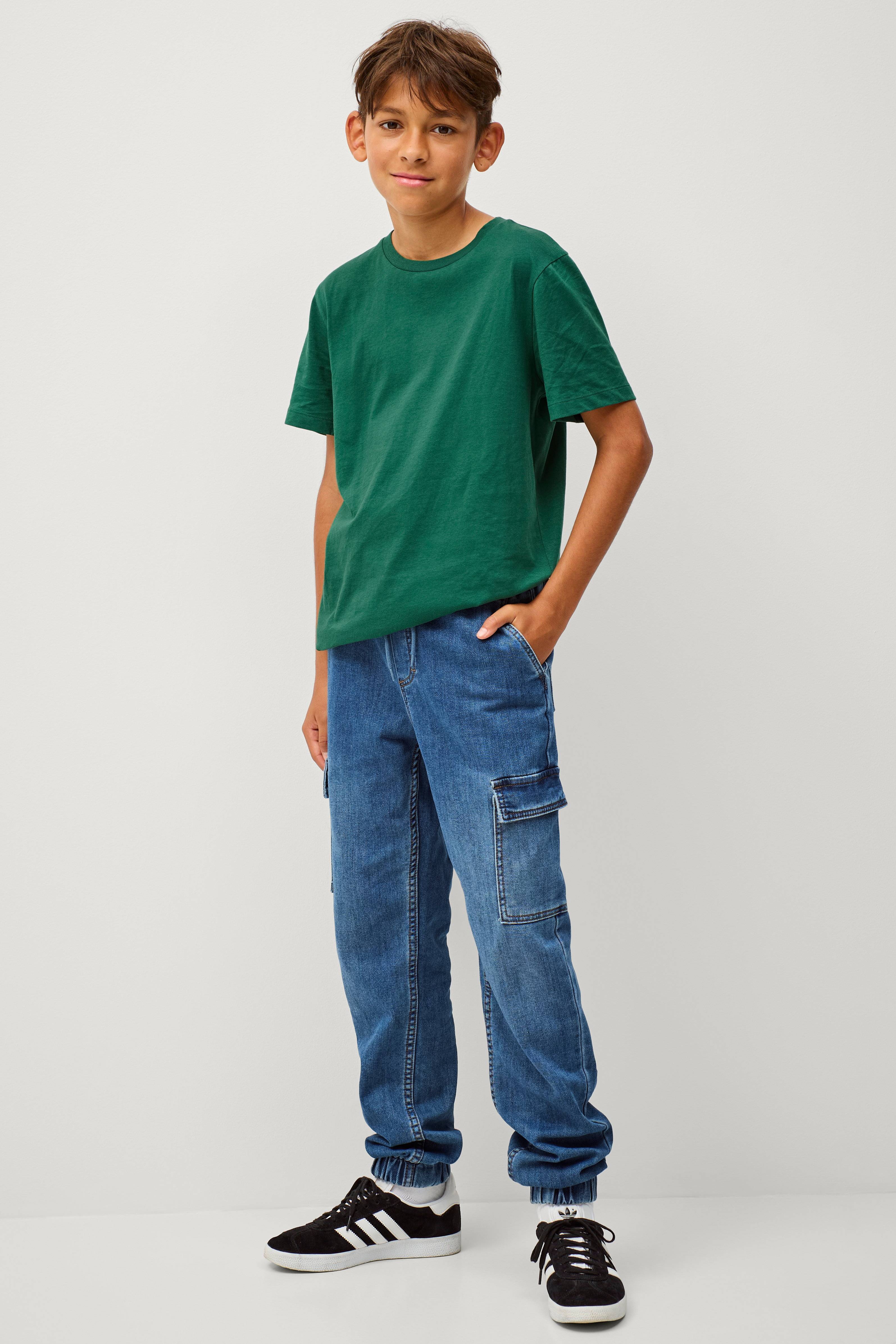 • Cargo-housut denimistä• Joustava vyötärö kiristysnyörillä• Kaksi taskua edessä• Kaksi takataskua• Kaksi jalkataskua kannella ja nepparilla• Kuminauha lahkeiden lopuissa