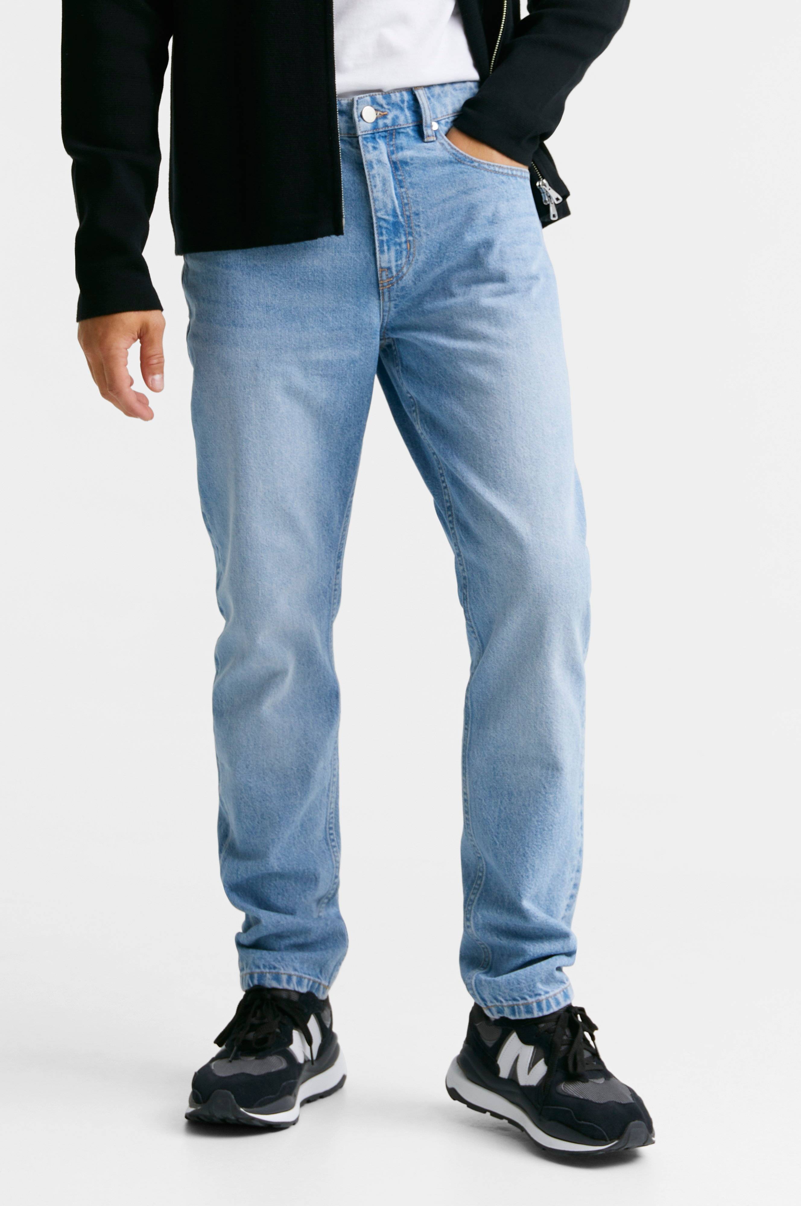 Studio Total Icton Regular Tapered -farkut. 100% puuvillaa. Regular fit. Kapenevat lahkeensuut. Viistaskumalli. Vetoketjullinen etuhalkio ja nappi.