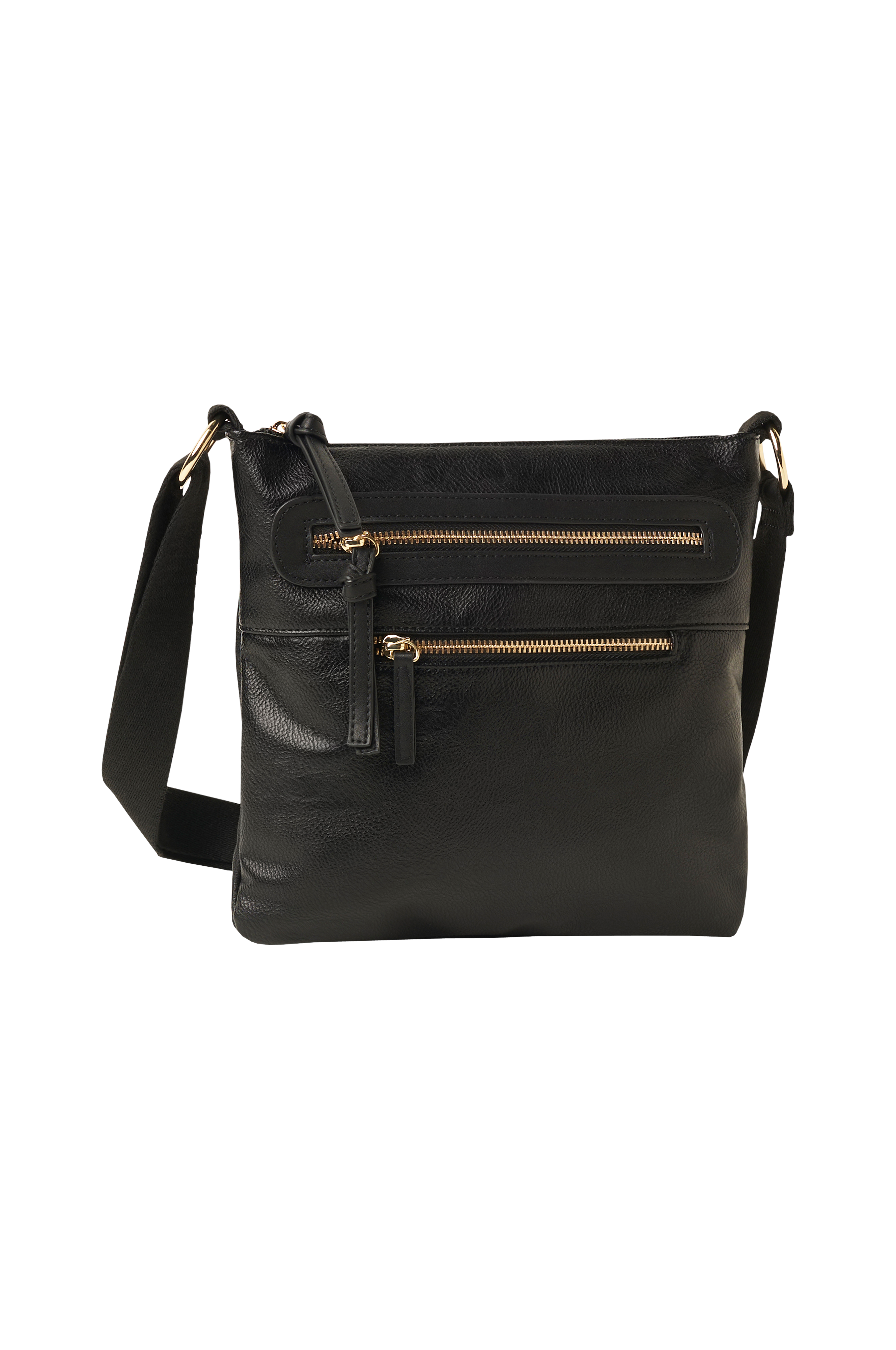 • Laukku keinonahasta • Vuorattu sisäpuoli yhdellä vetoketjutaskulla ja kahdella pienellä osiolla • Kaksi vetoketjutaskua ulkopuolella • Säädettävä olkain • Mitat: B 26 x H 25 x D 2 cm