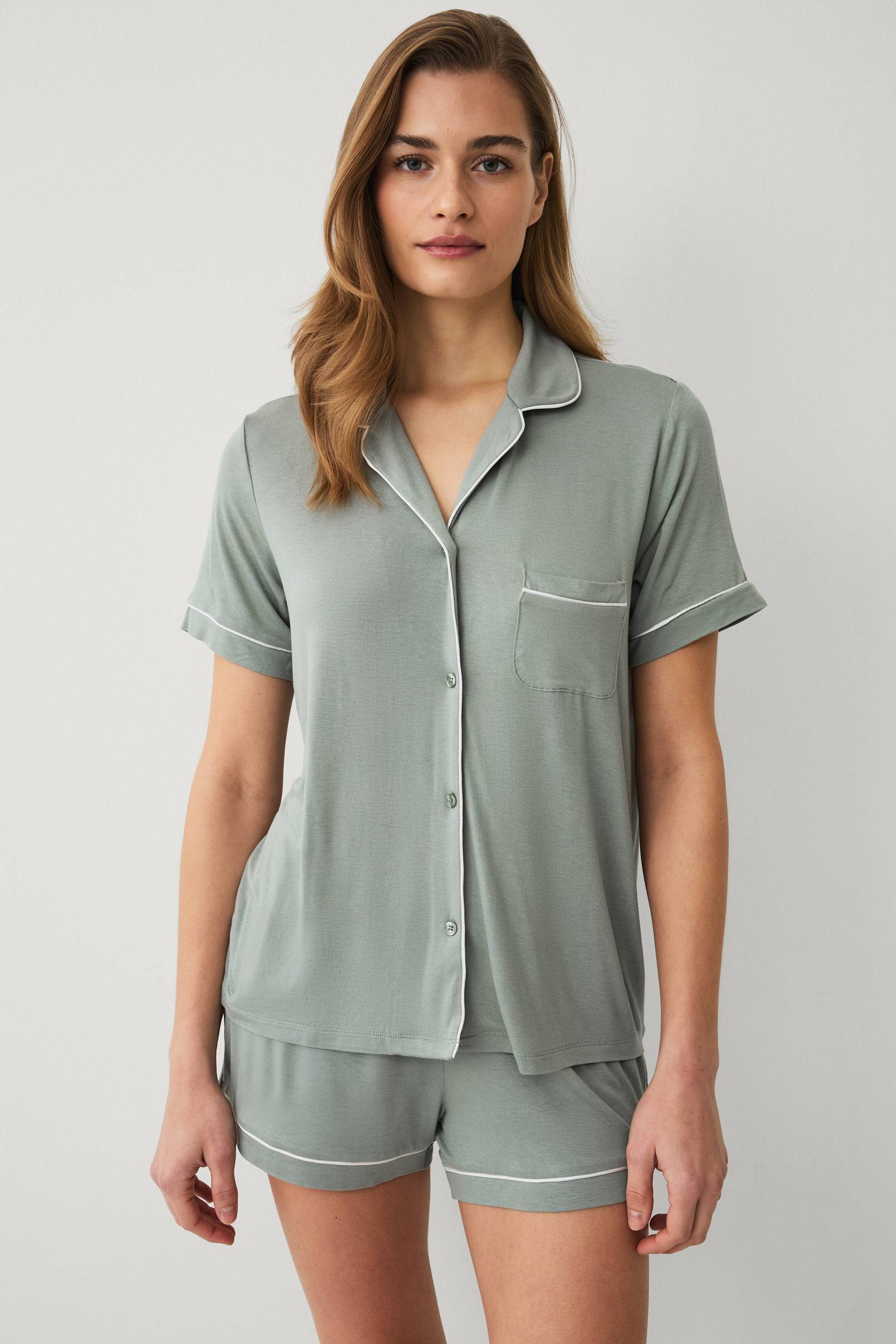 • Lyhythihainen paita nappikiinnityksellä ja yhdellä rintataskulla