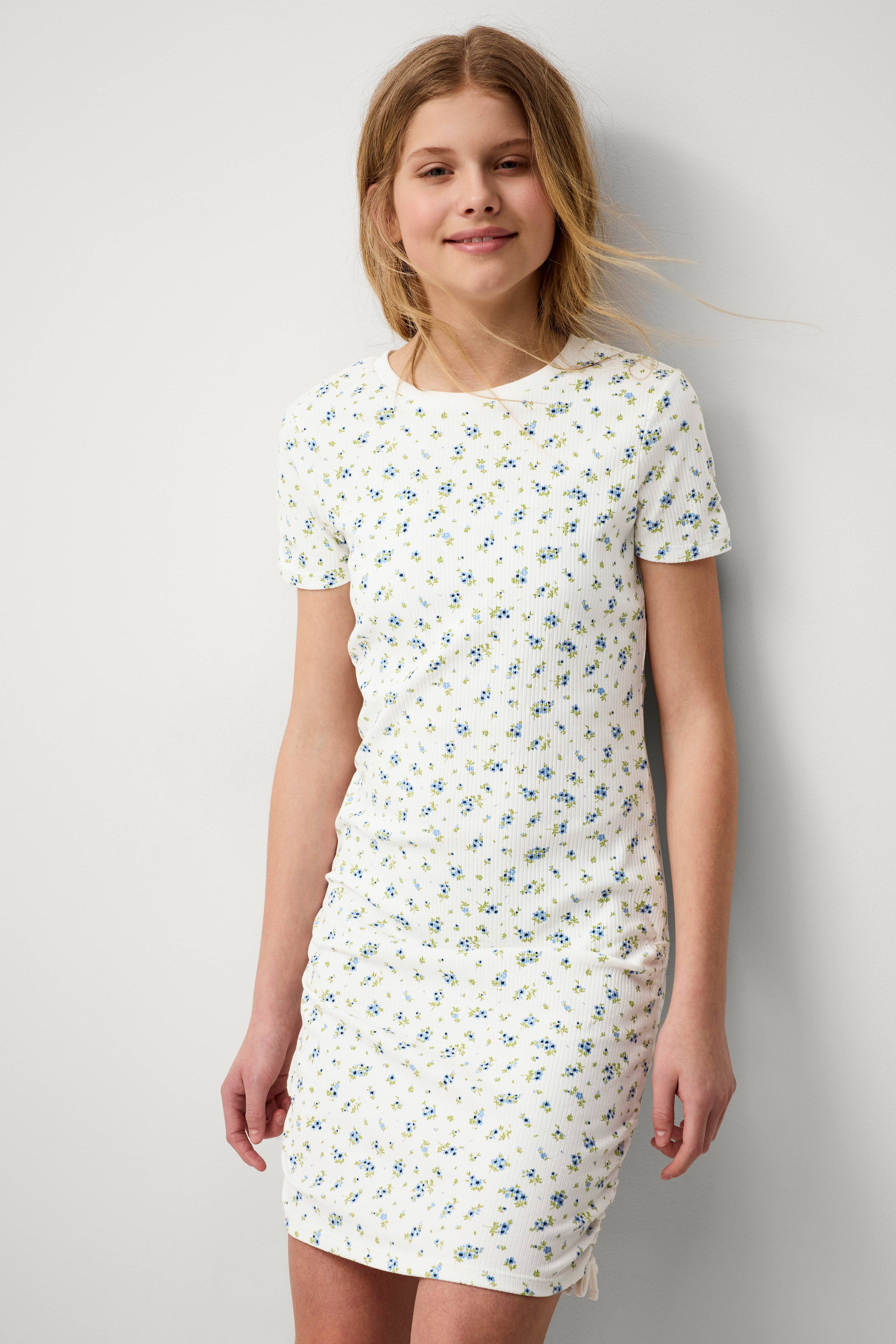• Pitkä malli trikoosta• Kaula-aukko pienellä reunalla• Lyhyt hiha joustavalla saumalla ylhäällä• Kiristysnyöri nyörillä alhaalla sivuilla