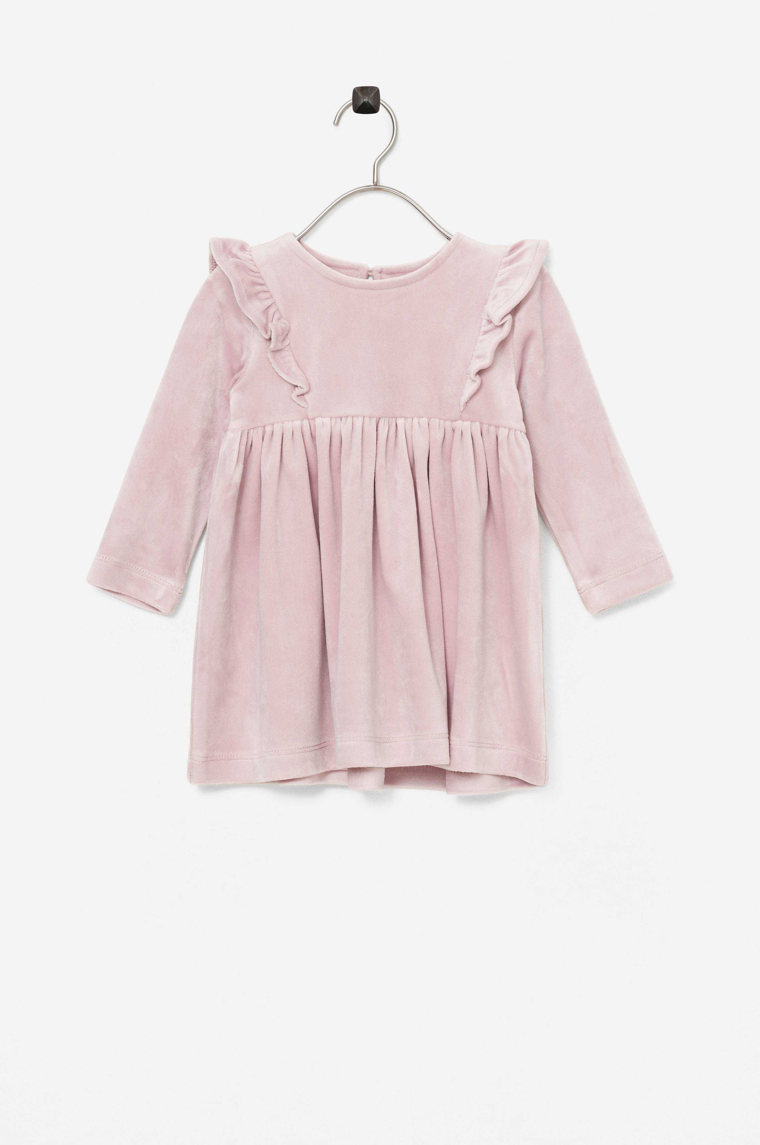 • Valmistettu veluurista• Levenevä malli• Pyöreä pääntie napilla niskan kohdalla• Röyhelöt olkapäiden yli• Pitkä hiha• Poimutettu vyötärö• Tuote sisältää kierrätettyä materiaalia, jonka käyttö vähentää jätteen määrää ja säästää luonnonvaroja.