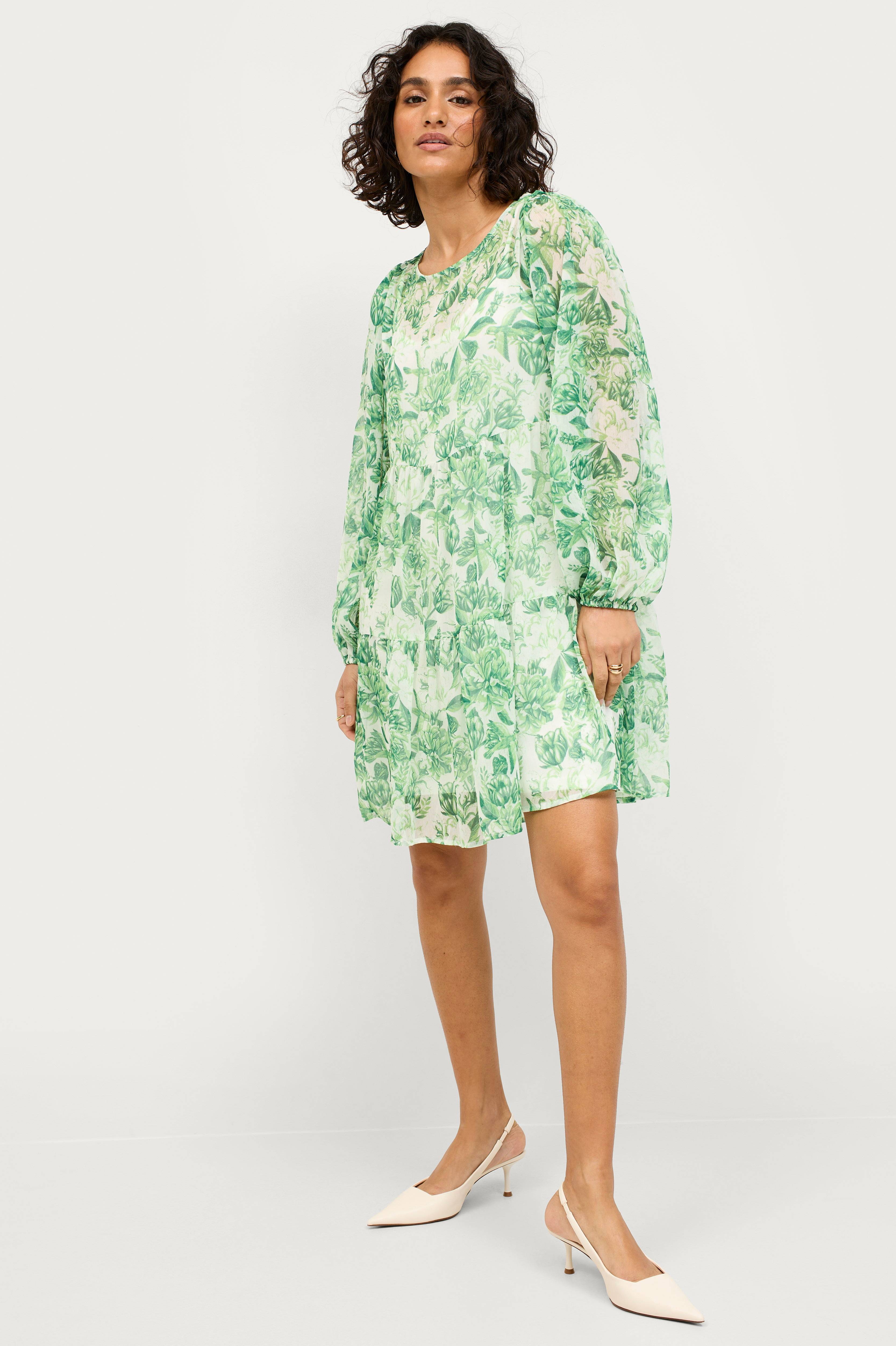 • Lyhyt, levenevä malli • Pyöreä pääntie halkiolla ja napilla niskan kohdalla • Pitkät, kookkaat pallohihat joustavilla hihansuilla • Se valmistetaan sifongista • Alushame trikoosta • Pituus: 90 cm koossa 38/40 • Tuote sisältää kierrätettyä materiaalia, jonka käyttö vähentää jätteen määrää ja säästää luonnonvaroja.