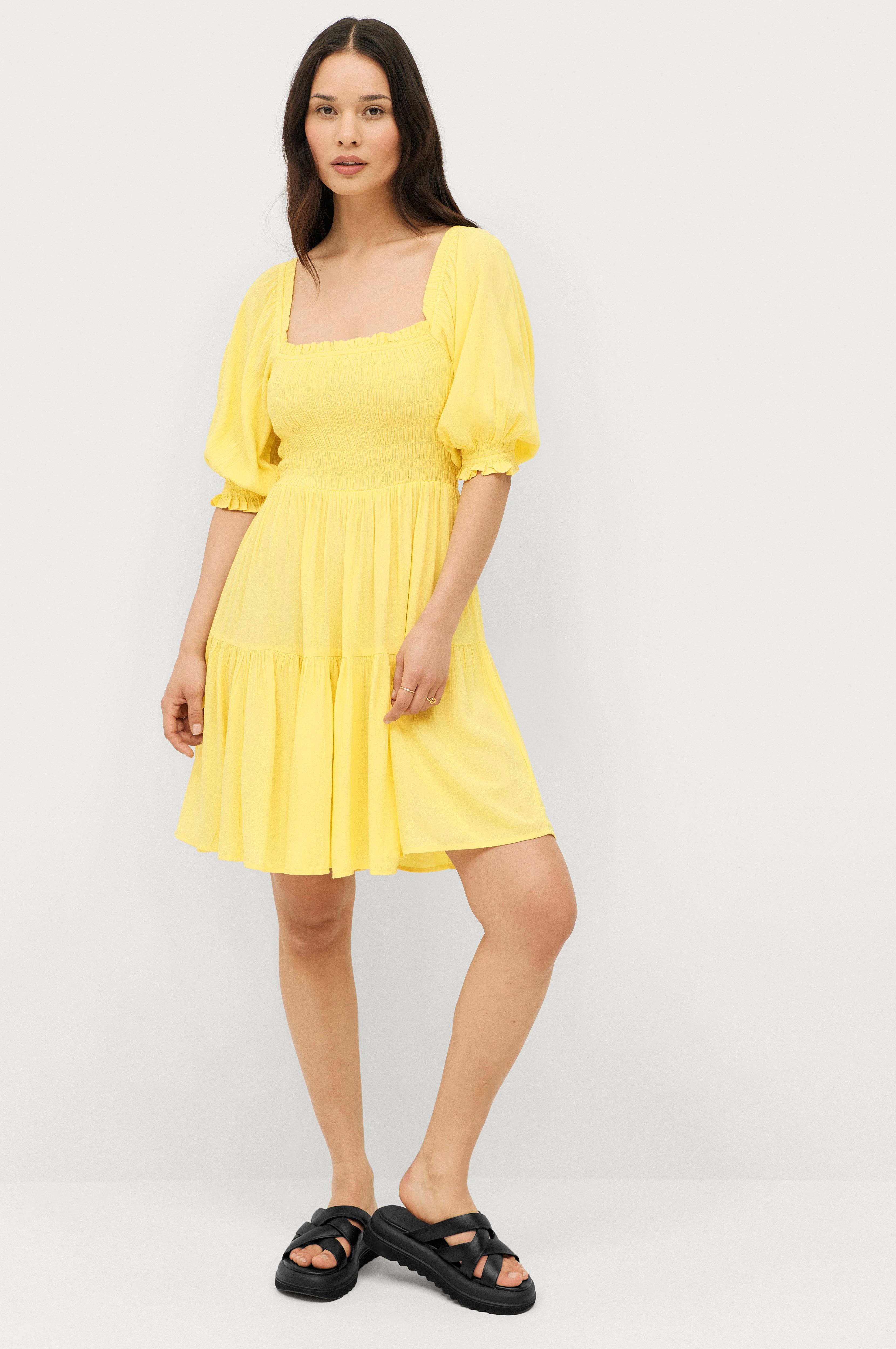 • Leveä, neliönmuotoinen kaula-aukko röyhelöreunalla kauttaaltaan