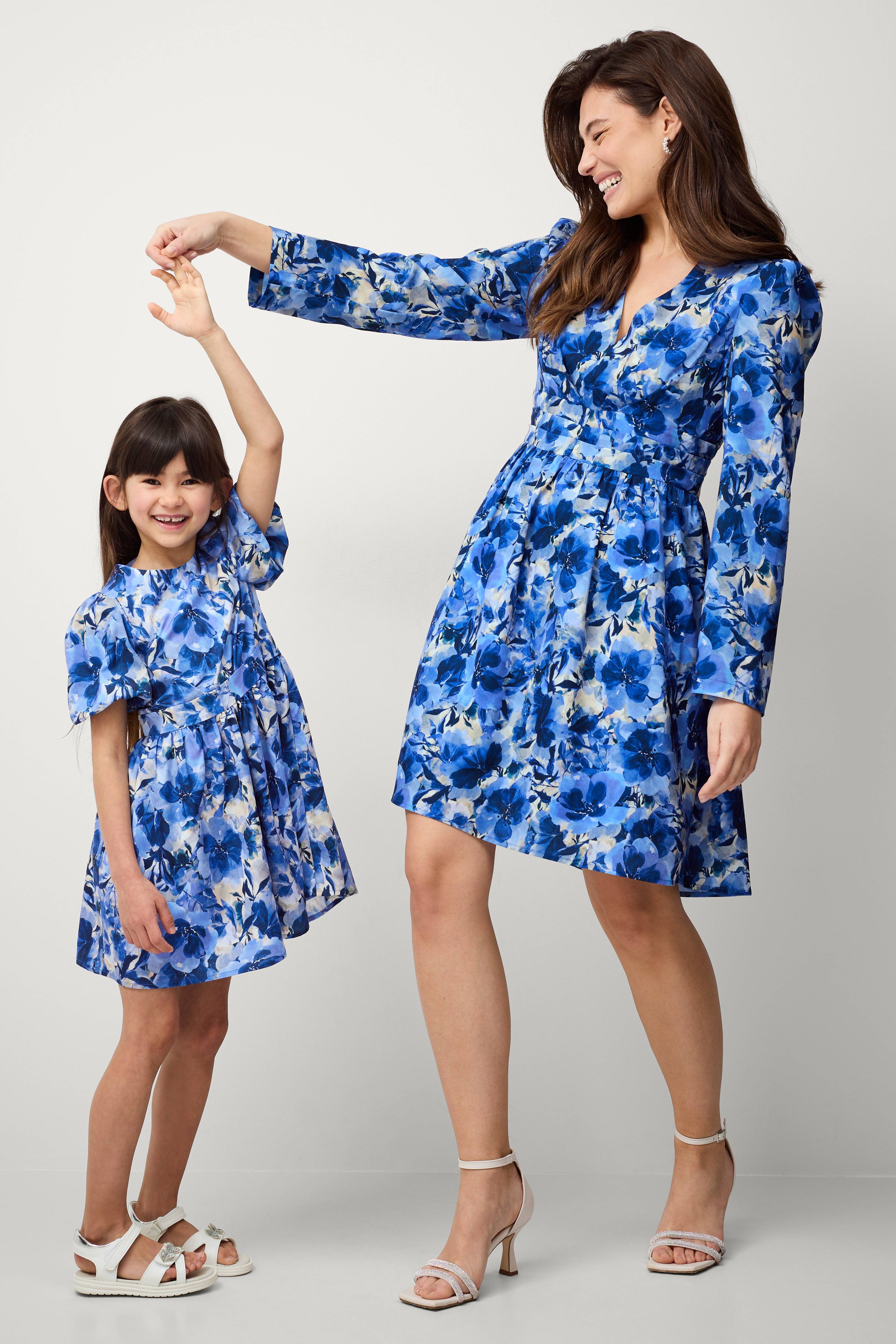 Hieno yhteensopivuus aikuisten version kanssa. Kangas on kaunis, ehkä ei niin leikkiystävällinen, joten sopii paremmin hienompiin juhliin tai häihin. Koko 110/116 sopi täydellisest…