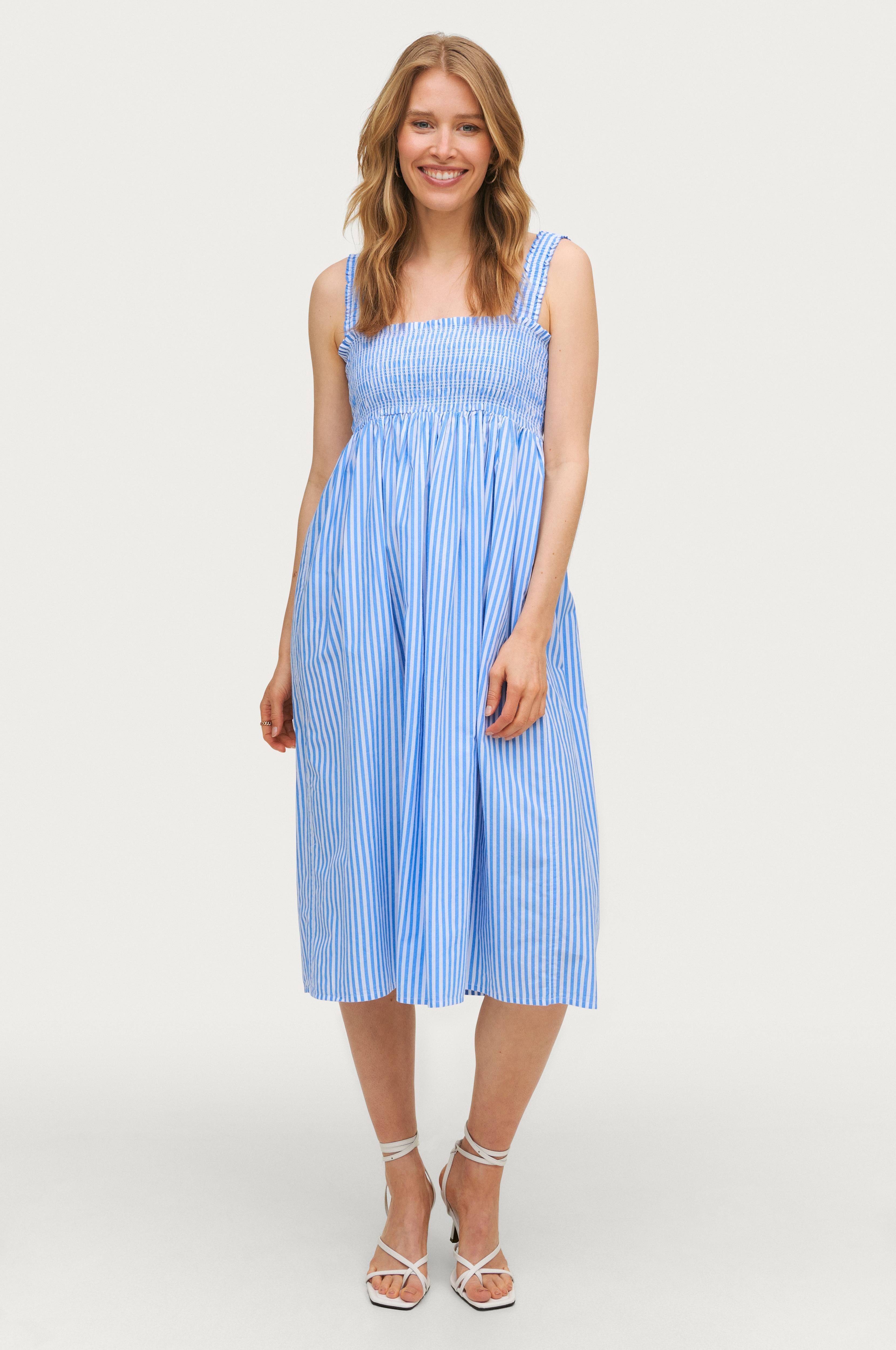 • Laskostettu yläosa • Elastiset olkaimet • Levenevä hame • Pituus: 112 cm koossa 34/36 • Ellos tekee yhteistyötä Better Cottonin kanssa puuvillanviljelyn parantamiseksi maailmanlaajuisesti. Better Cotton on kansainvälinen voittoa tavoittelematon järjestö, joka kouluttaa puuvillanviljelijöitä kestävämpään puuvillanviljelyyn, tehokkaampaan veden käyttöön ja vähäisempään torjunta-aineiden käyttöön. Better Cotton parantaa puuvillanviljelijöiden sosiaalisia, taloudellisia ja ympäristöön liittyviä olosuhteita. Valitsemalla puuvillatuotteitamme tuet investointiamme Better Cottonin tavoitteisiin. Better Cotton perustuu massatasejärjestelmään, eikä sitä voida jäljittää fyysisesti lopputuotteisiin. Lue lisää Better Cottonista osoitteesta bettercotton.org/learnmore.