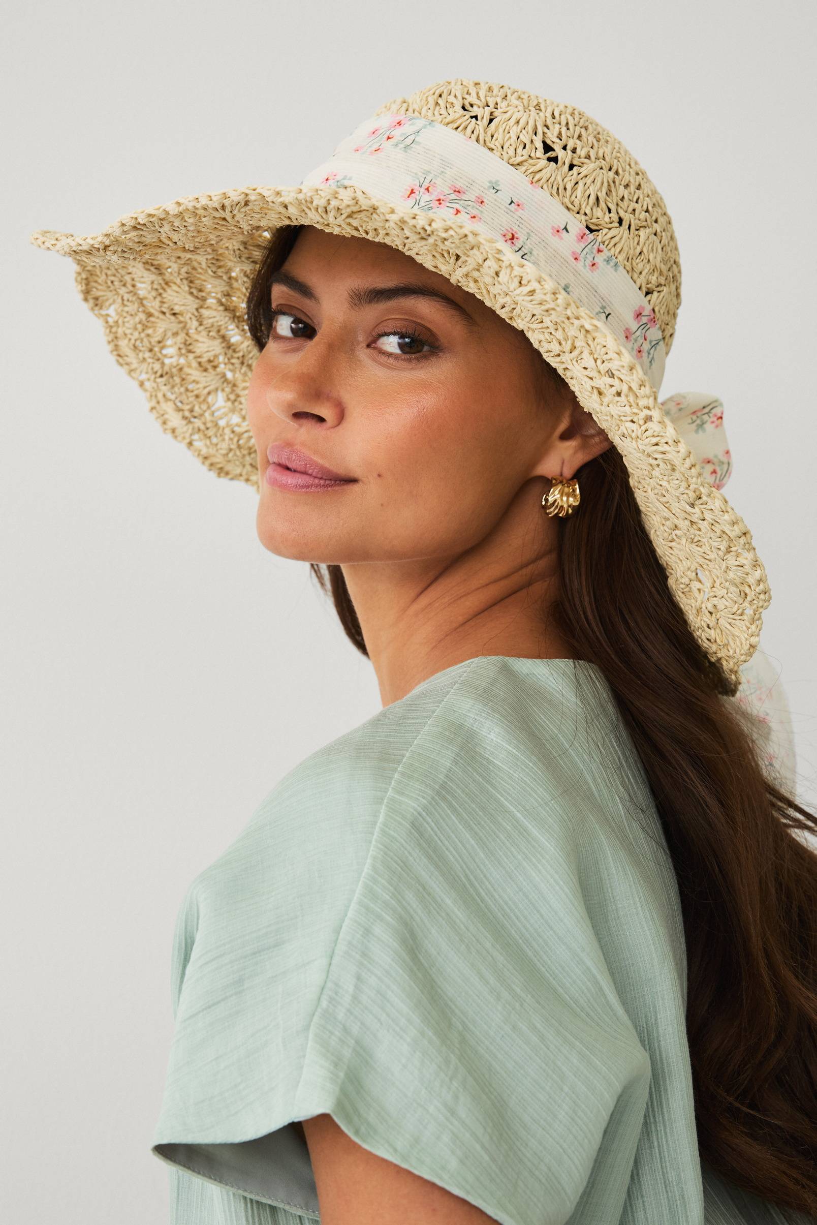 • Olkihattu koristeellisella rusetilla takaosa• Sisäinen, säädettävä kiristysnyöri• Levyn leveys: 12 cm