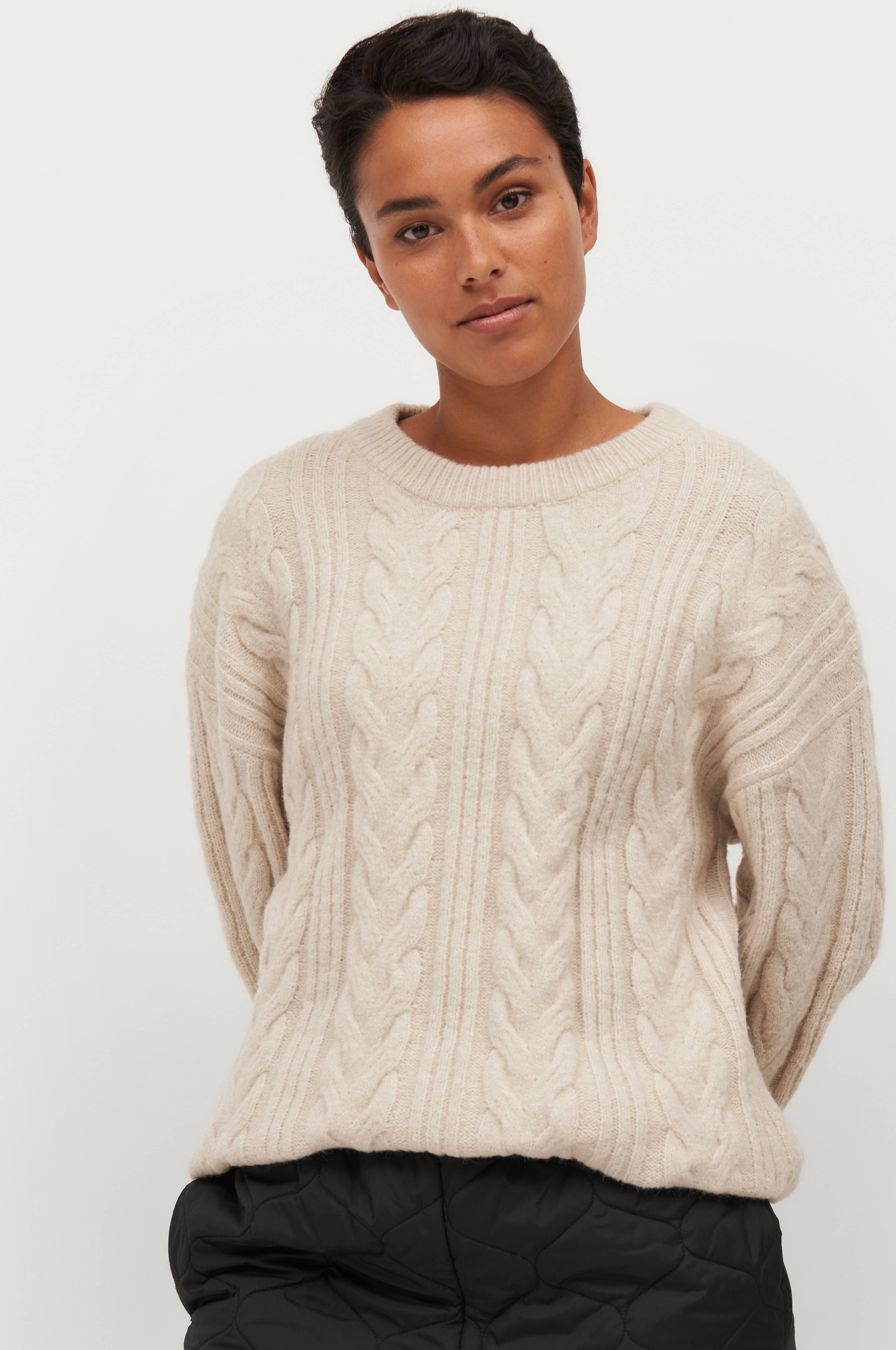• Palmikkoneulottu paita • Pudotetut olkapäät • Hieman leveämmit hihat • Pituus: 68 cm koossa 34/36 • Tuote sisältää kierrätettyä materiaalia, jonka käyttö vähentää jätteen määrää ja säästää luonnonvaroja.