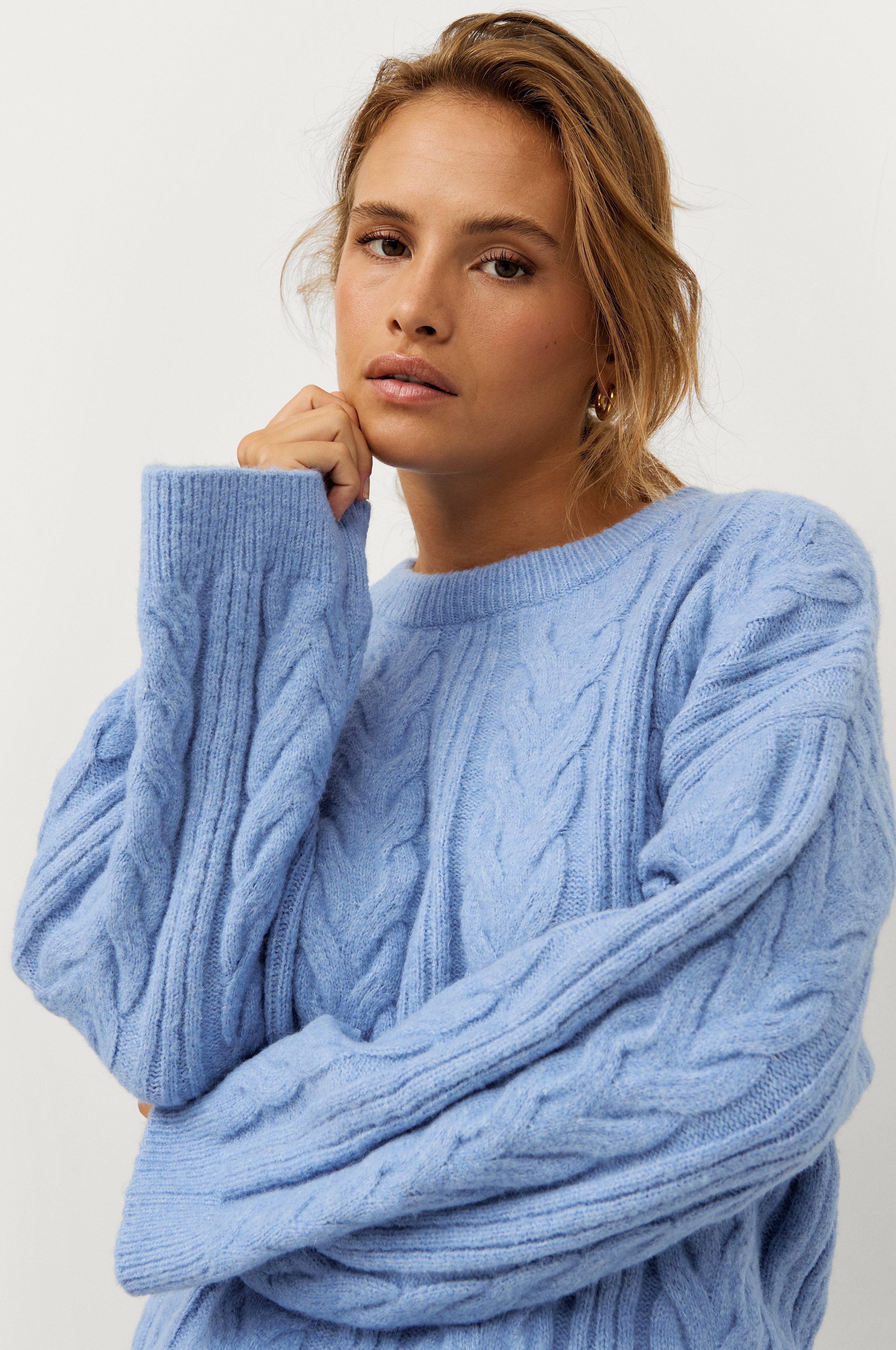 • Palmikkoneulottu paita • Pudotetut olkapäät • Hieman leveämmit hihat • Pituus: 68 cm koossa 34/36 • Tuote sisältää kierrätettyä materiaalia, jonka käyttö vähentää jätteen määrää ja säästää luonnonvaroja.
