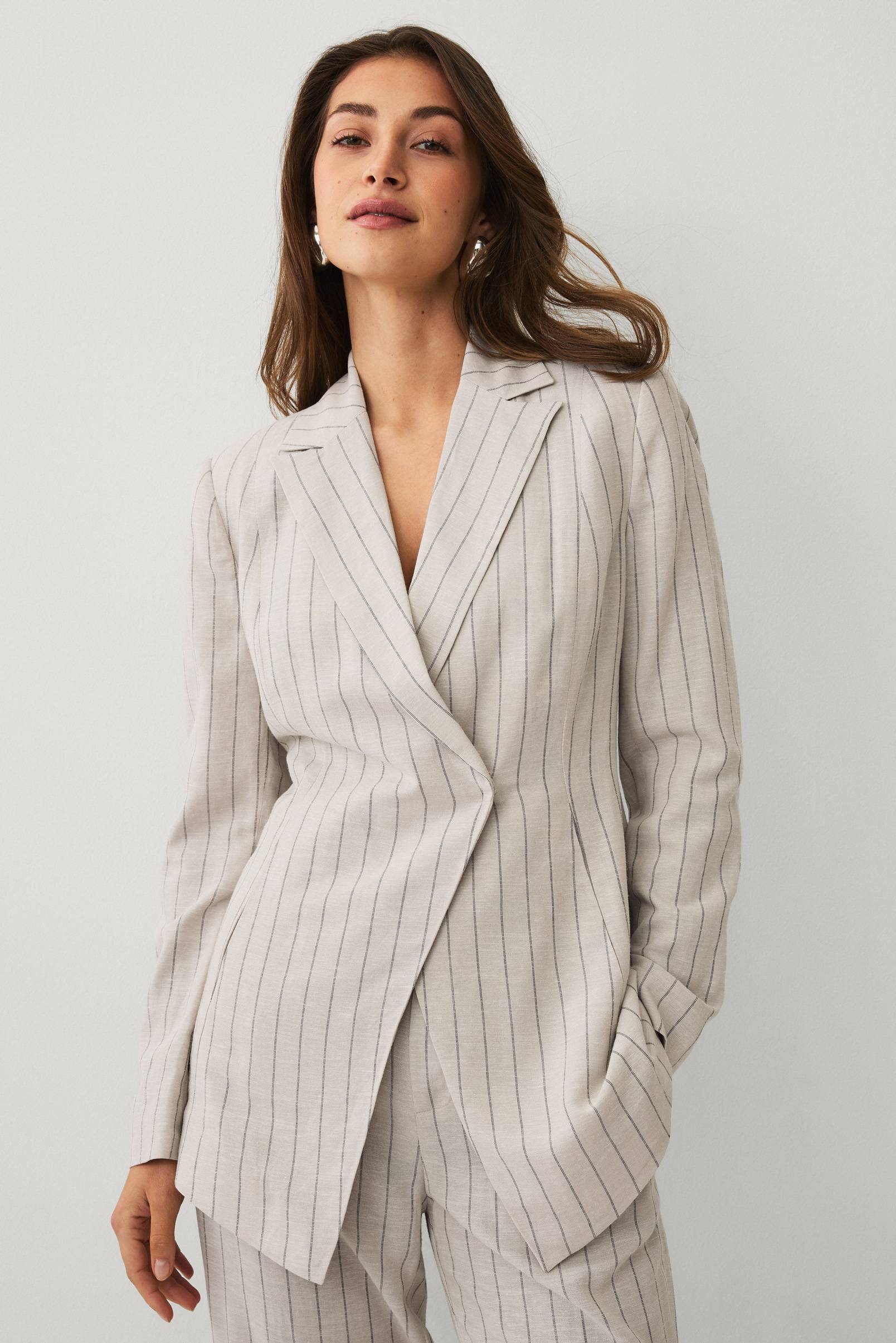 • Pikkutakki viskoosista sommitelmalla pellavasta
