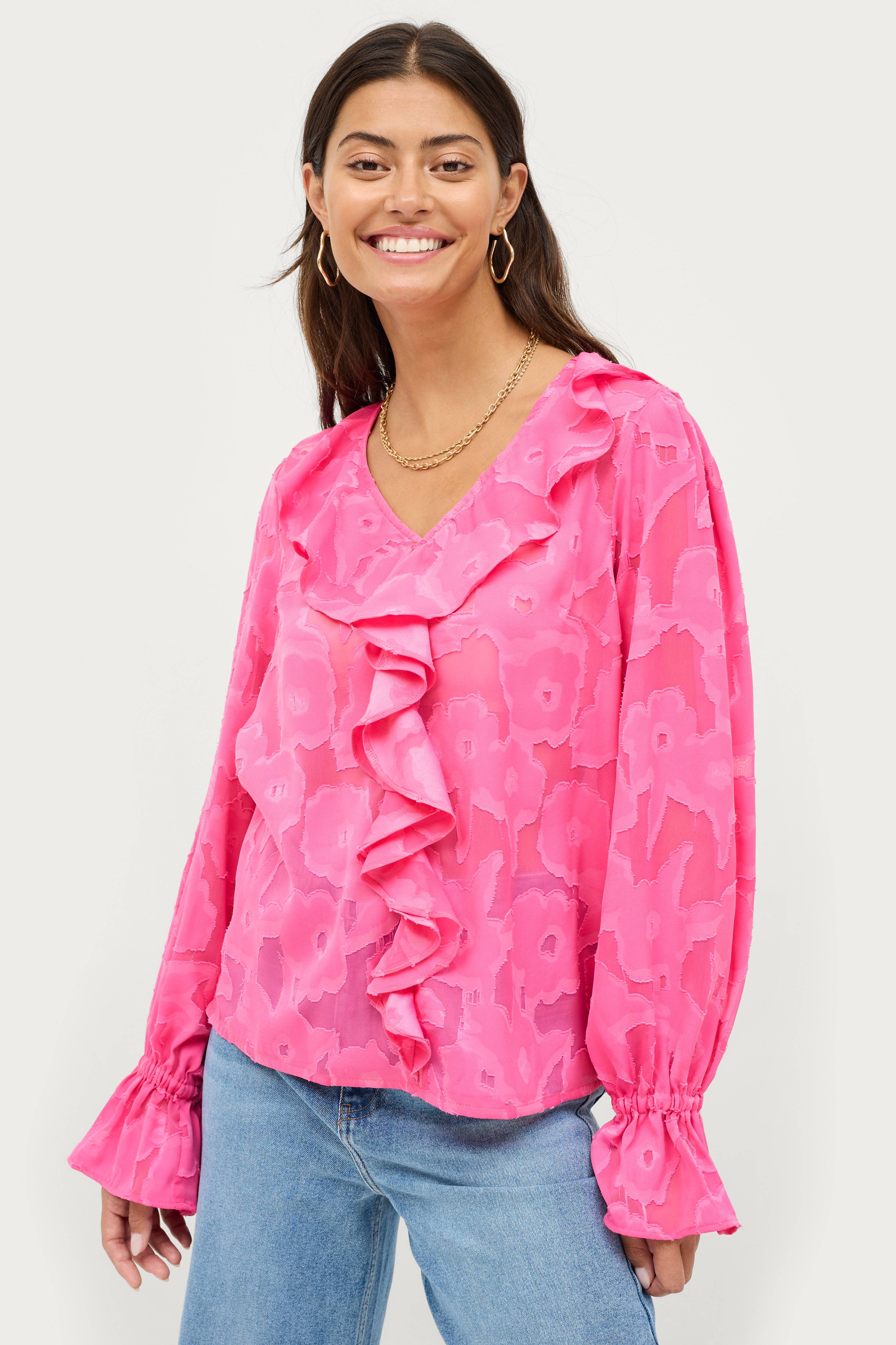 • Läpinäkyvä pusero sifongista kudotulla kuvioinnilla