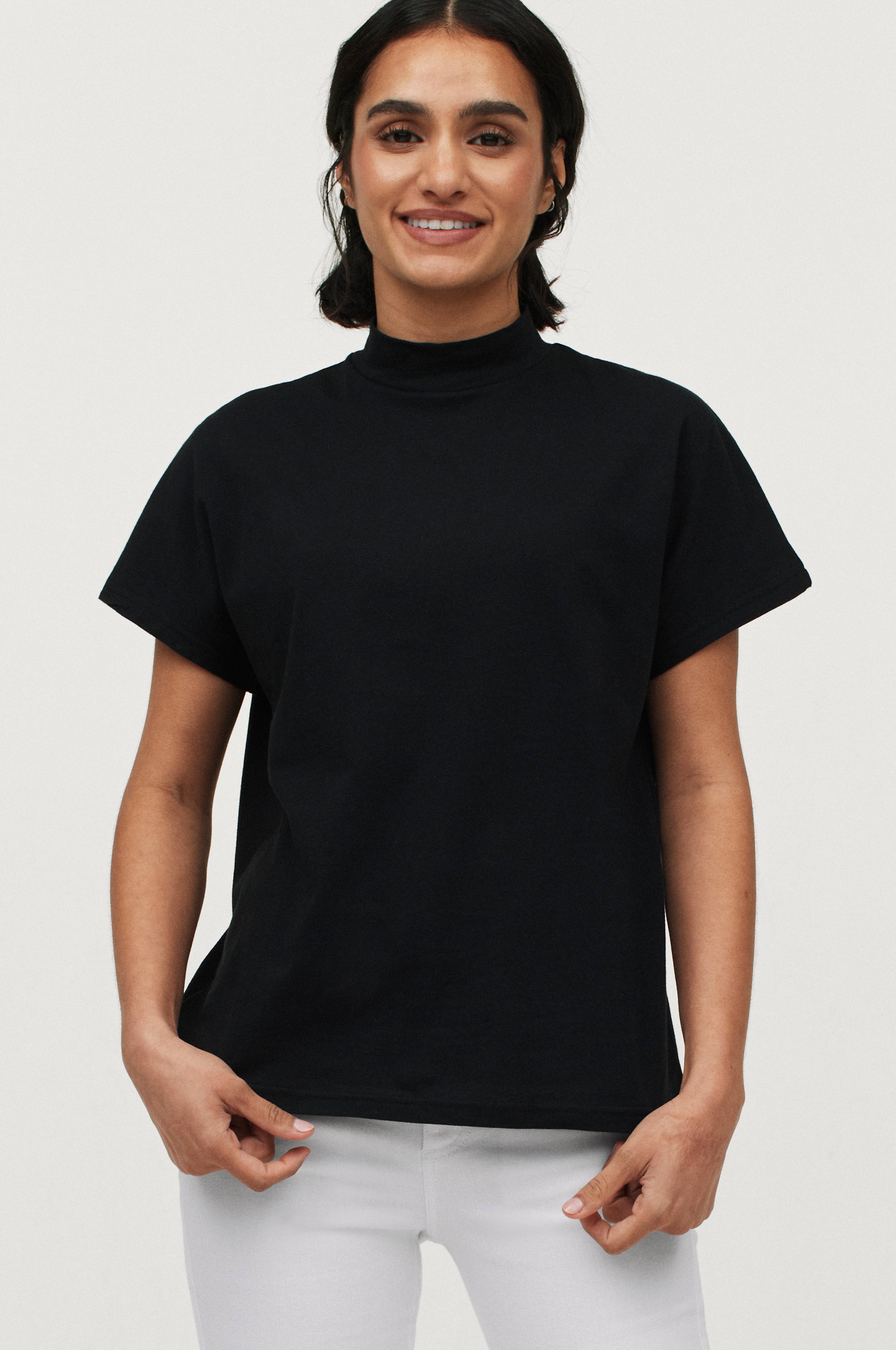 Haddi-pusero puuvillatrikoota. Lyhyet hihat ja pystykaulus. Rento istuvuus. Pituus n. 62 cm koossa 34/36.