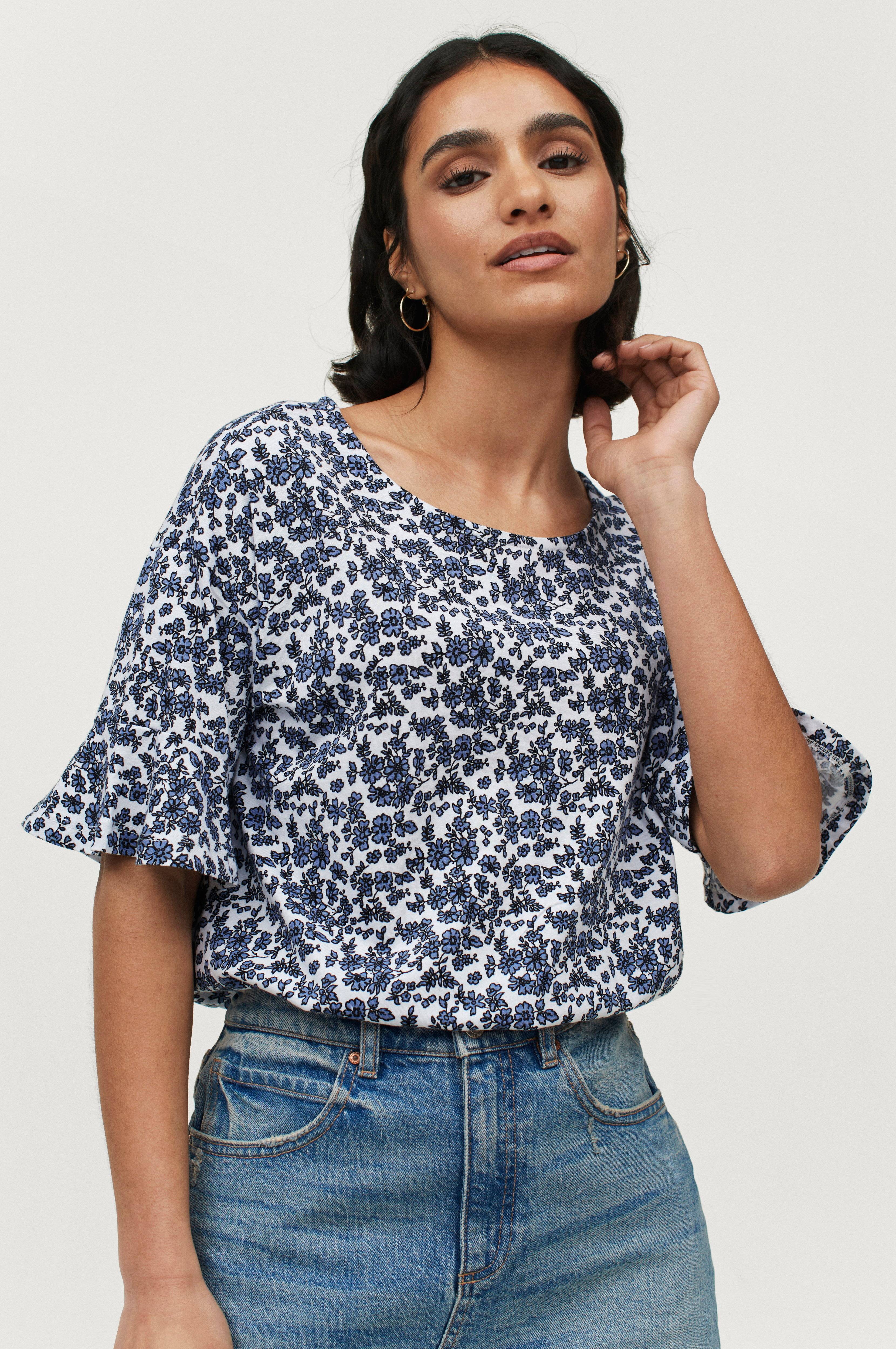 Malli on 171 cm pitkä ja hänellä on päällään koko 34/36