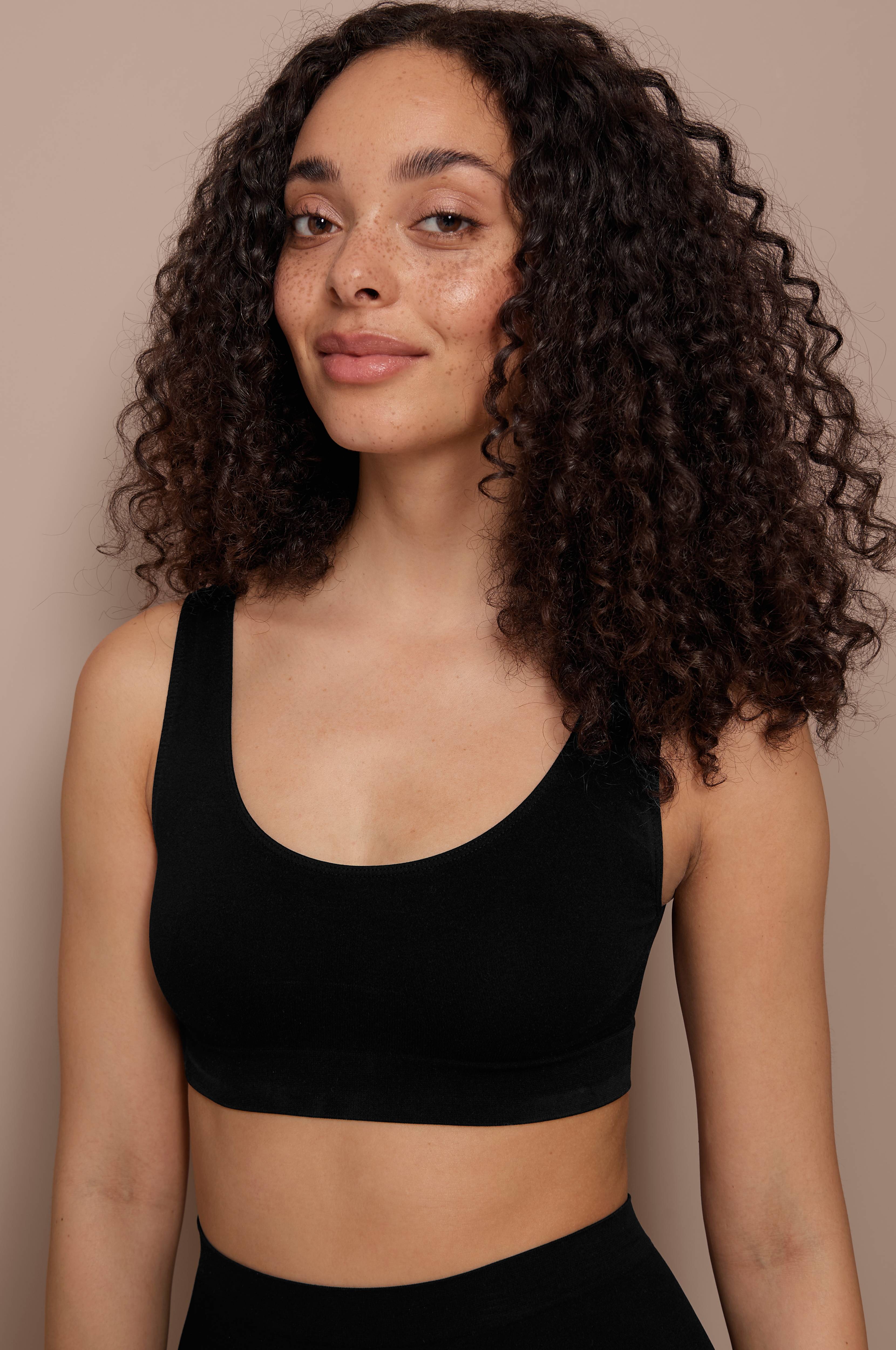 Saumaton rintaliivitoppi pehmeää trikoota. Leveä, miellyttävä kuminauha alareunassa.