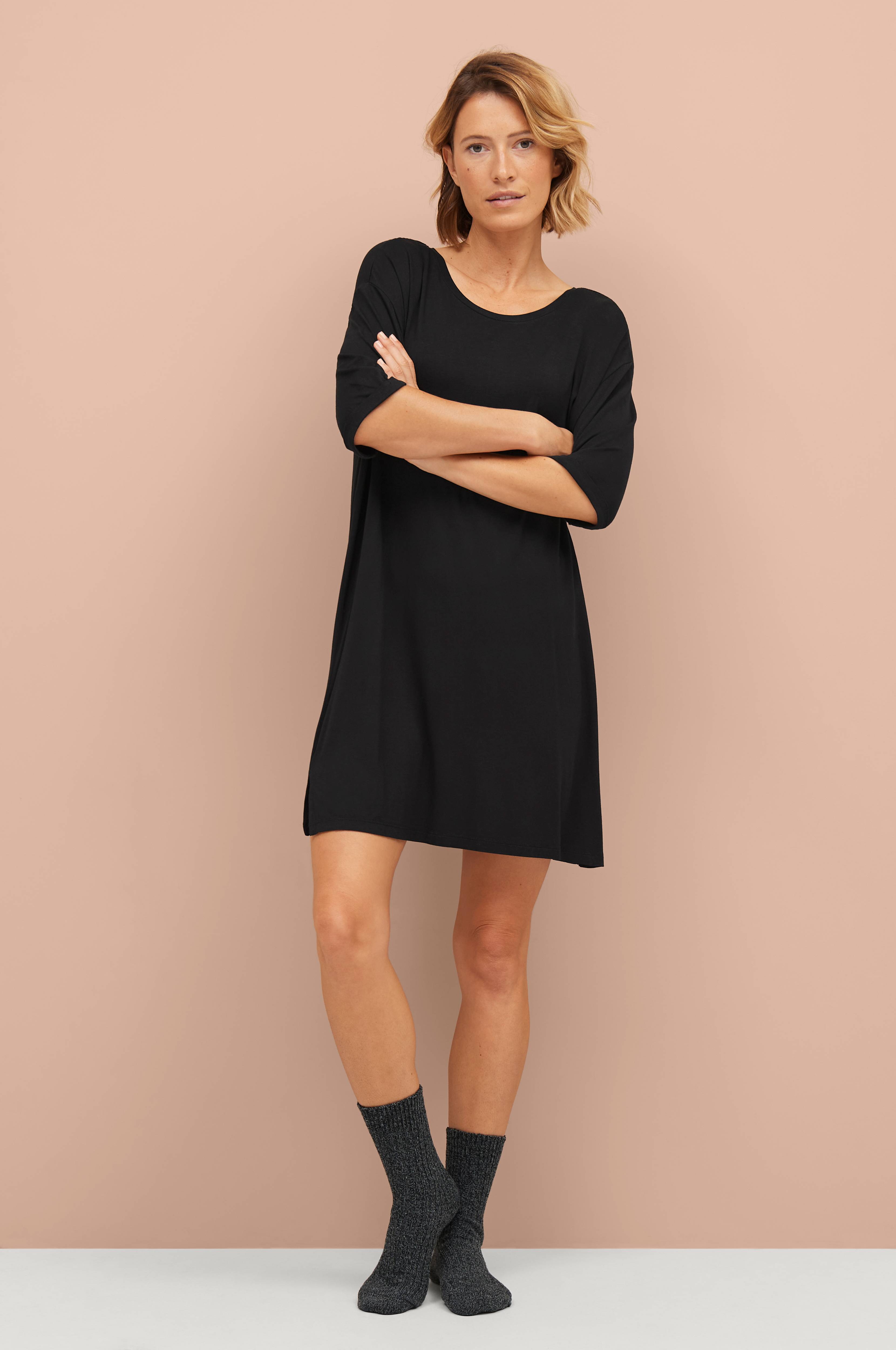 Malli on 176 cm pitkä ja hänellä on päällään koko 36/38