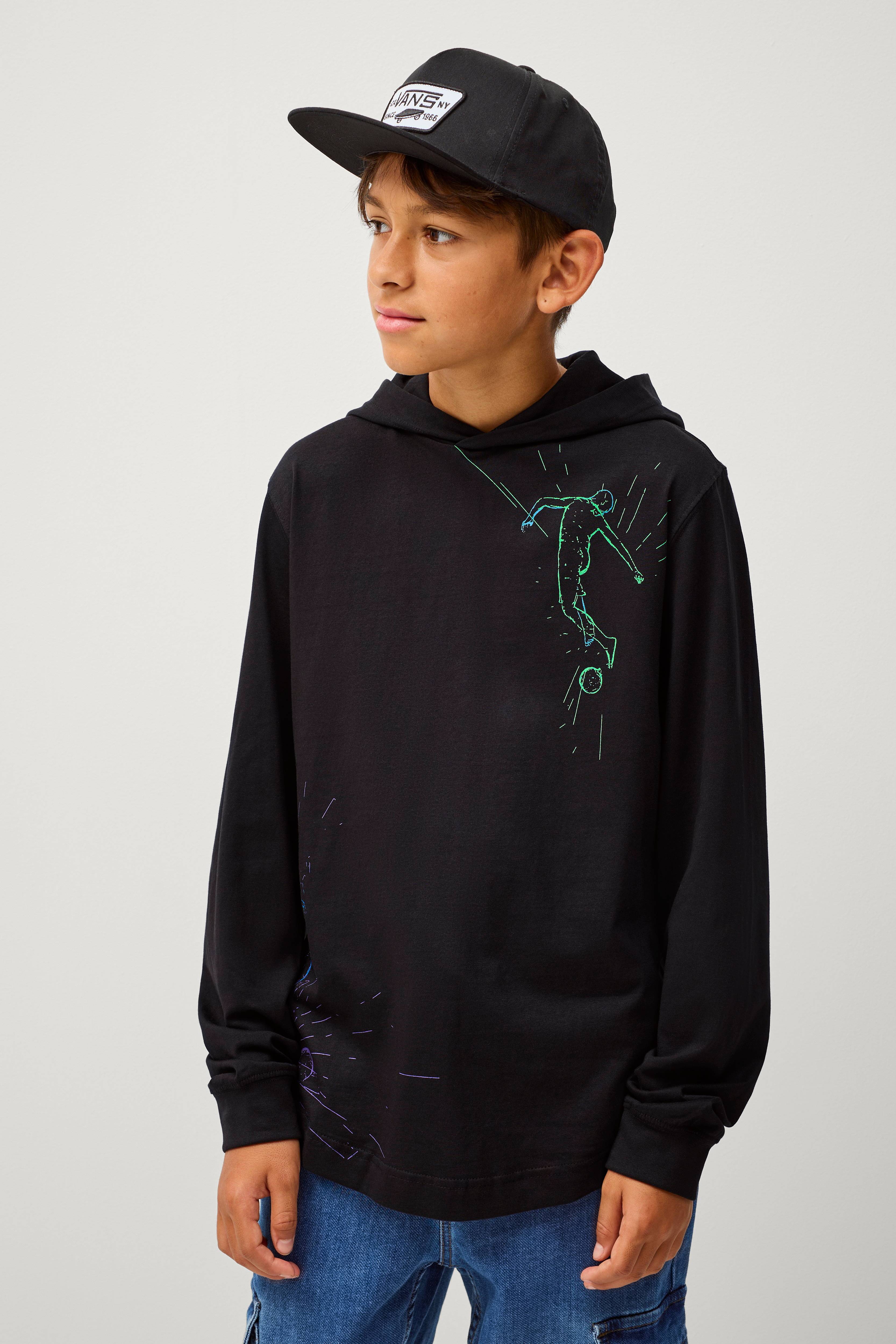 • Pitkähihainen T-paita puuvillasta• Huppu• Printti edessä• Ribbiresorit hihansuissa