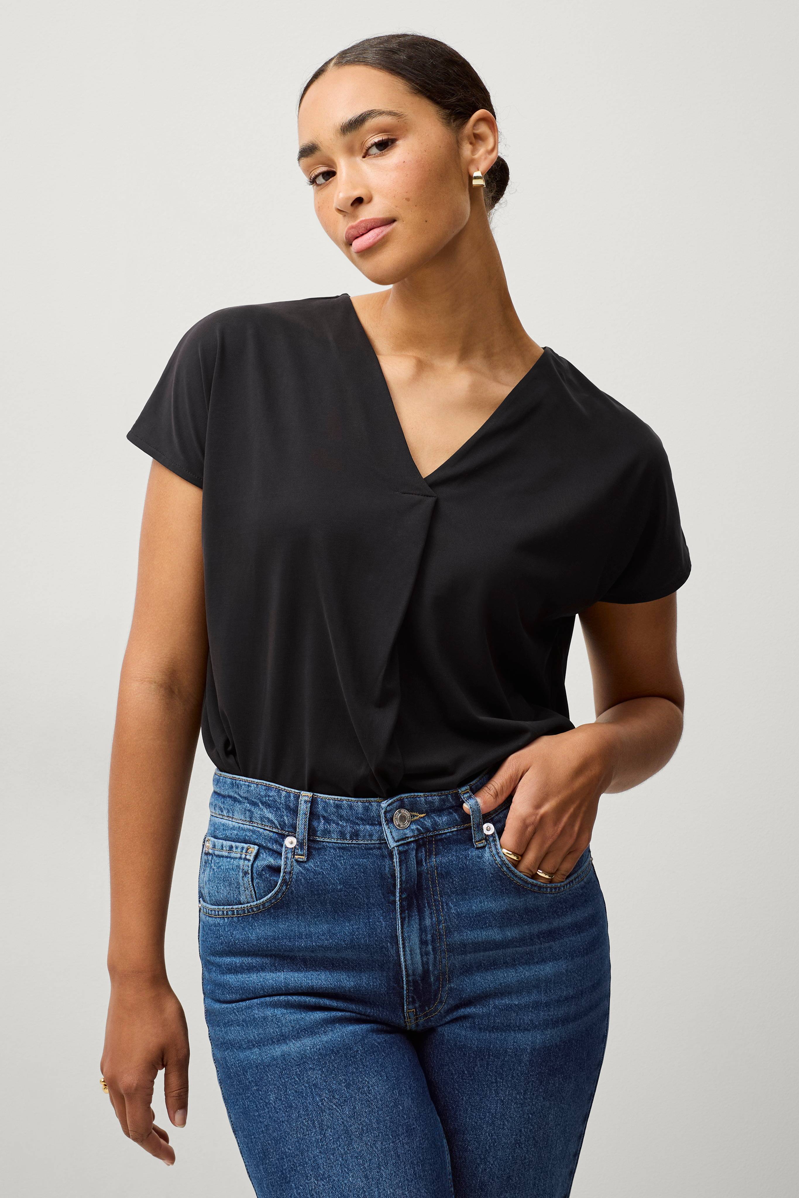 • Toppi pehmeästä modaalisekoitteesta• V-kaula-aukko vekillä• Lyhyet hihat