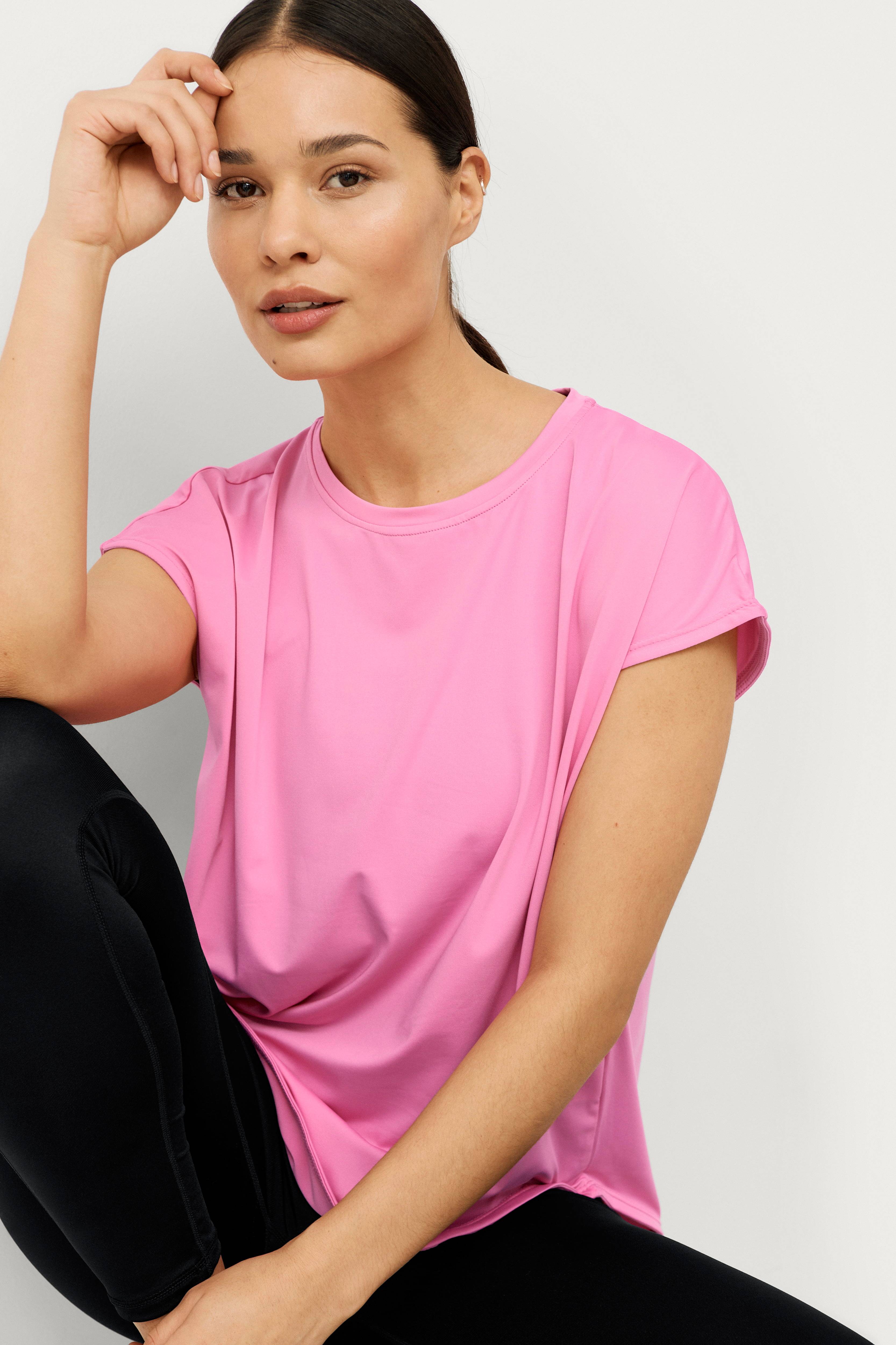 - Laatikkomainen malli ja väljä istuvuus- Lyhyet hihat- Nopeasti kuivuvaa, kosteutta siirtävää materiaalia- Pituus: 63 cm koossa 36/38