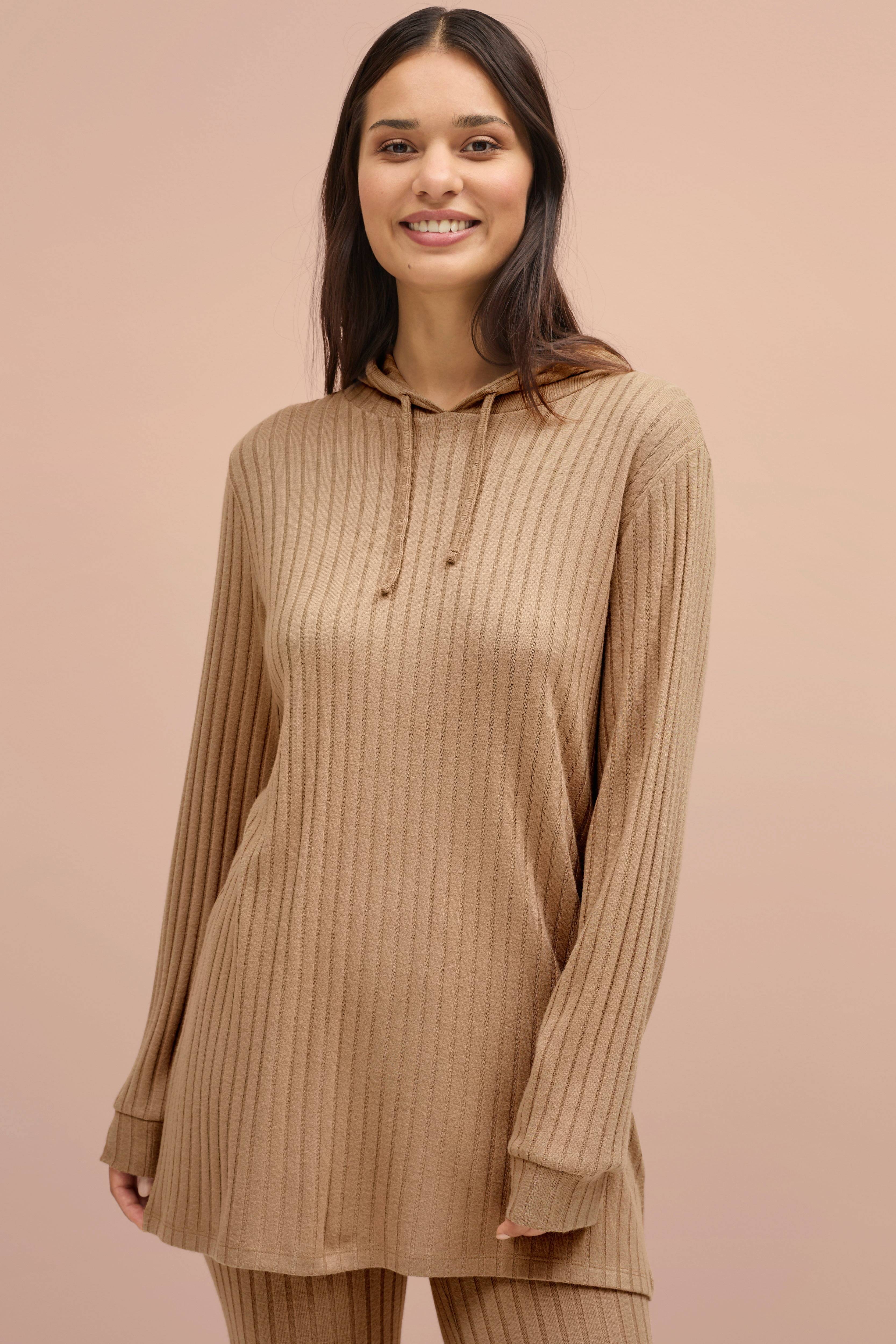• Pehmeä, resorimainen, joustava materiaali• Huppu kiristysnyörillä• Hihansuut hihansuissa• Pituus: 84 cm koossa S