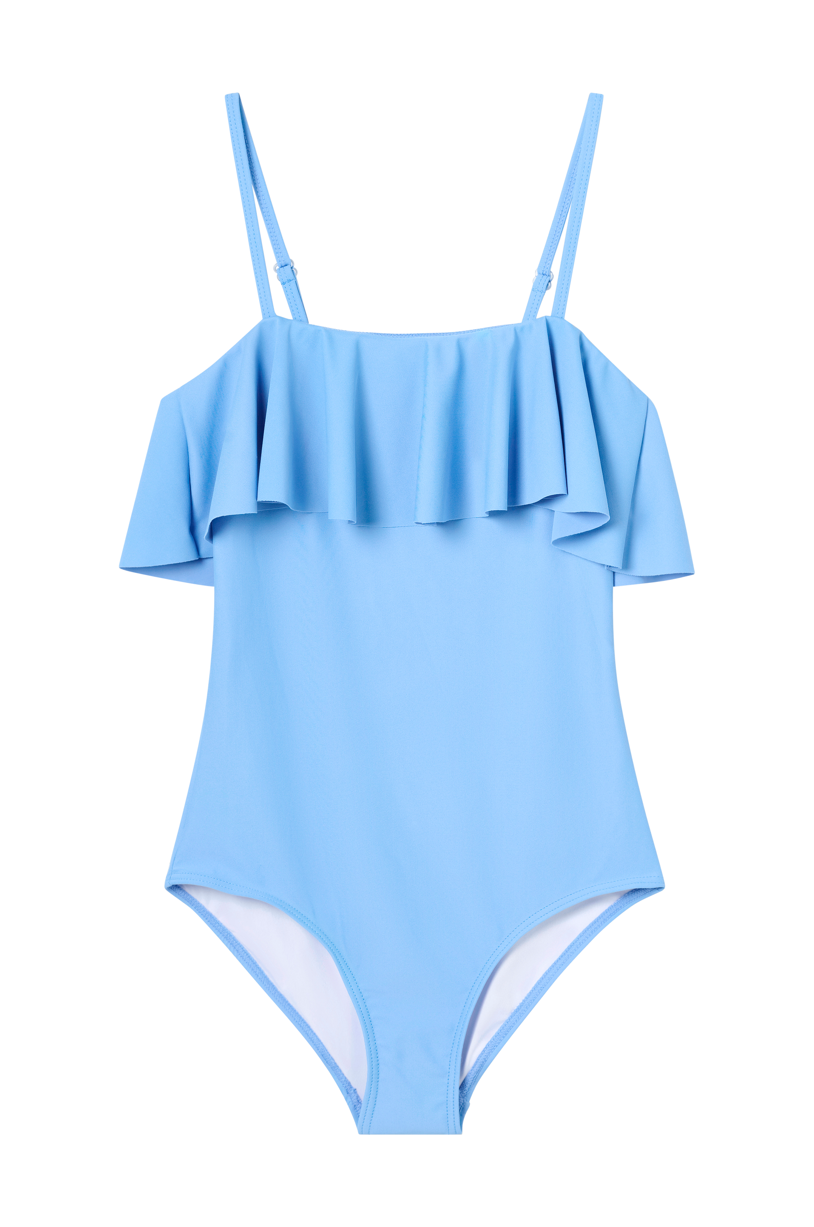 • Vuorattu uimapuku röyhelökerroksella ylhäällä• Säädettävät, ohuet olkaremmit