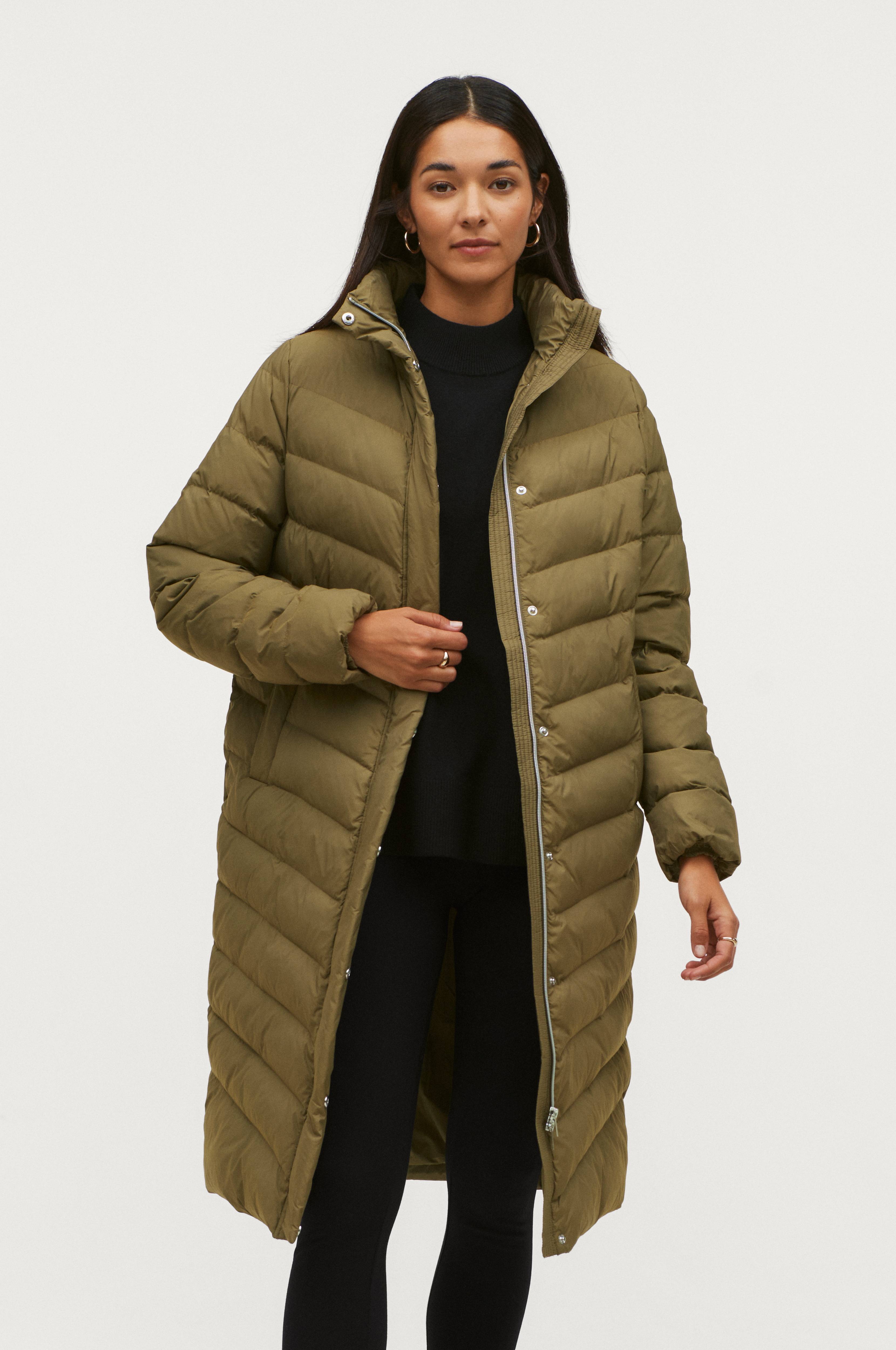 Kevytuntuvatakki, jossa pehmeä, kevyt ja lämmin täyte. Vuori kierrätettyä polyesteriä. Kaksi fleecevuorillista taskua. Kaksisuuntainen vetoketju ja painonapillinen tuulisuojalista. Kuminauha hihansuissa. Pituus n. 104 cm koossa 34/36.