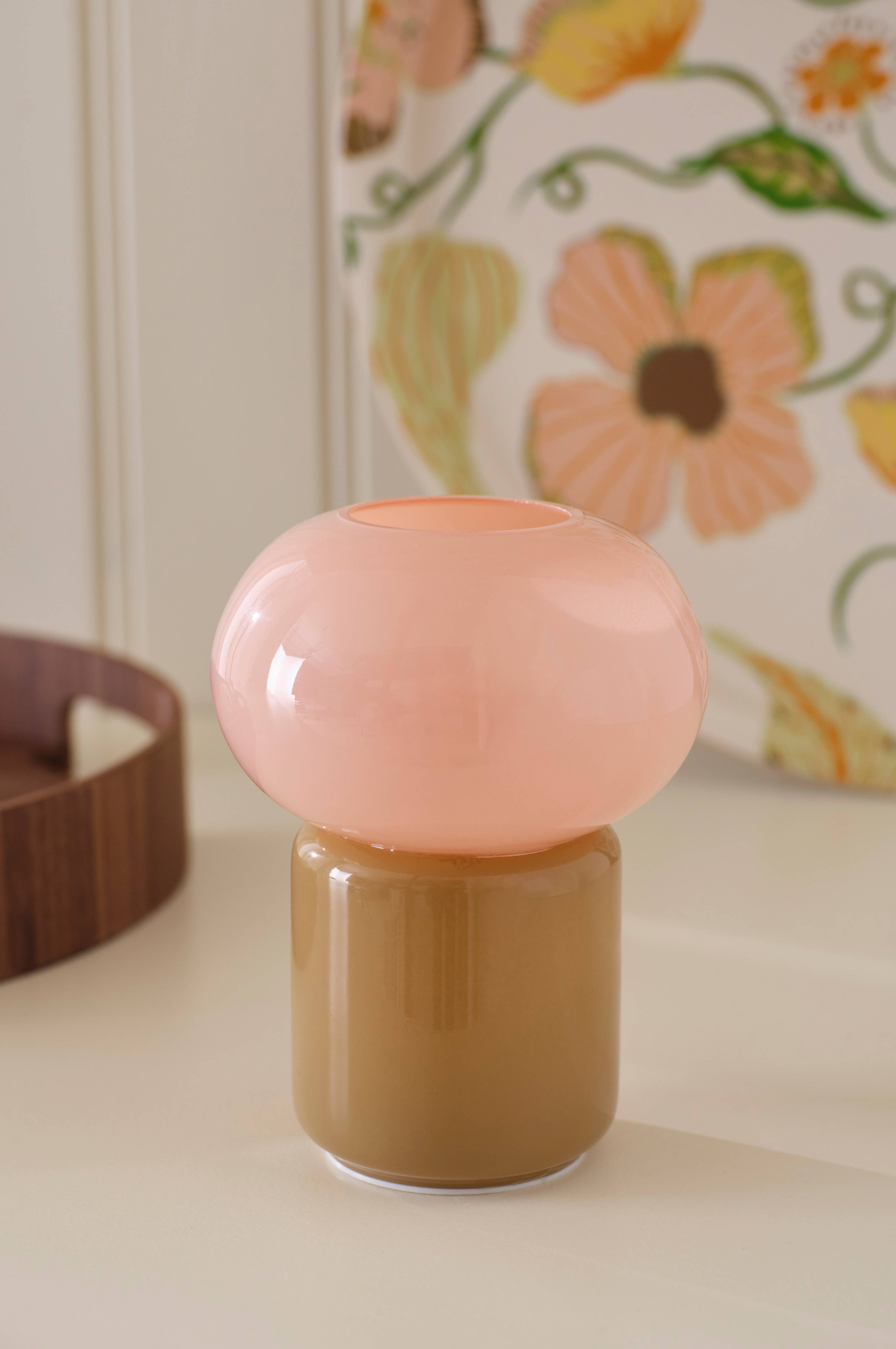 Hieno lasinen lamppu. Helppo sijoittaa, koska se toimii paristoilla. Sopii hyvin yhteen hieman pienemmän mallin kanssa.
