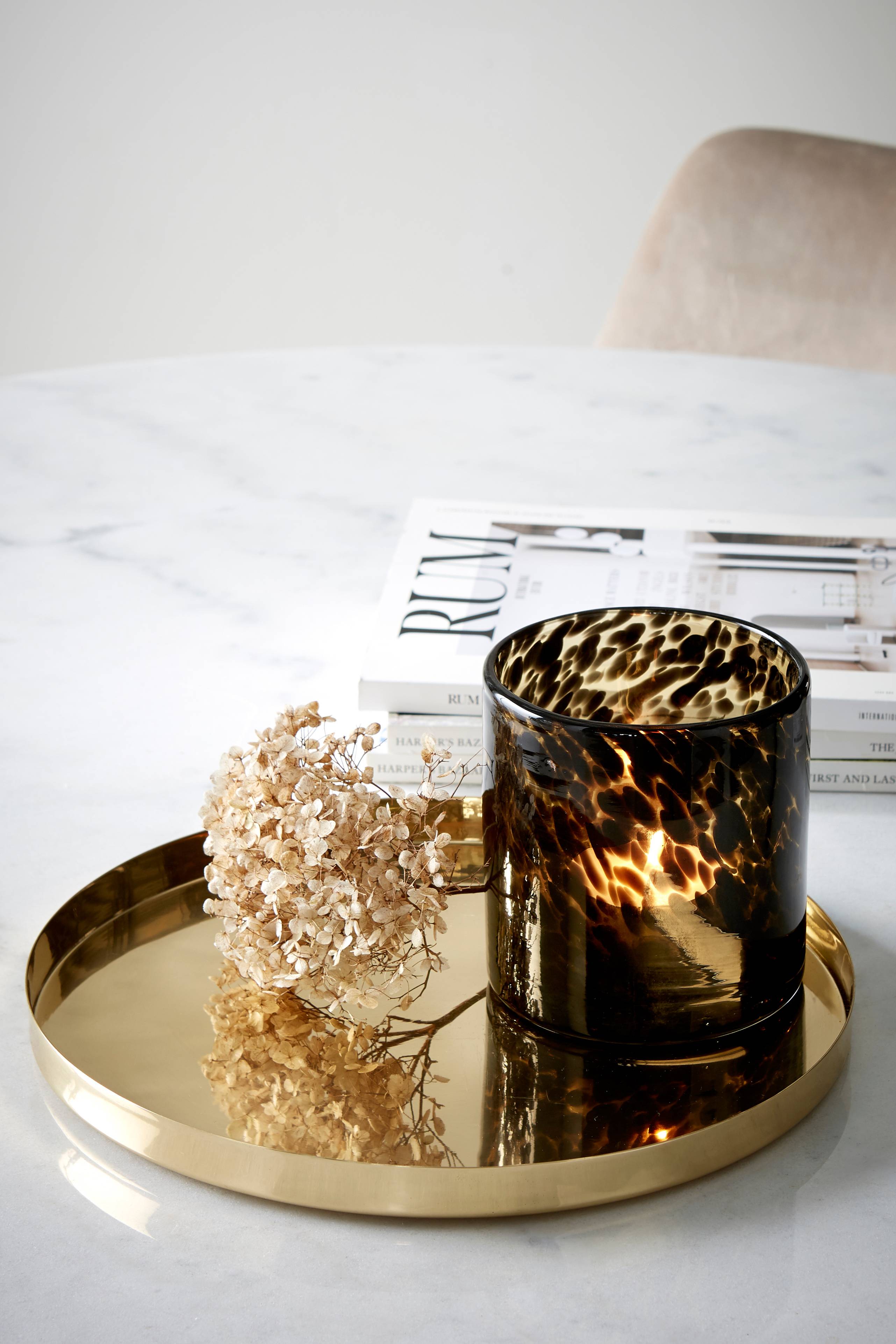 Ruukun aluslautanen tai koristevati kiiltäväpintaista messinkiä. Ø 30,5 cm. Korkeus 2 cm.