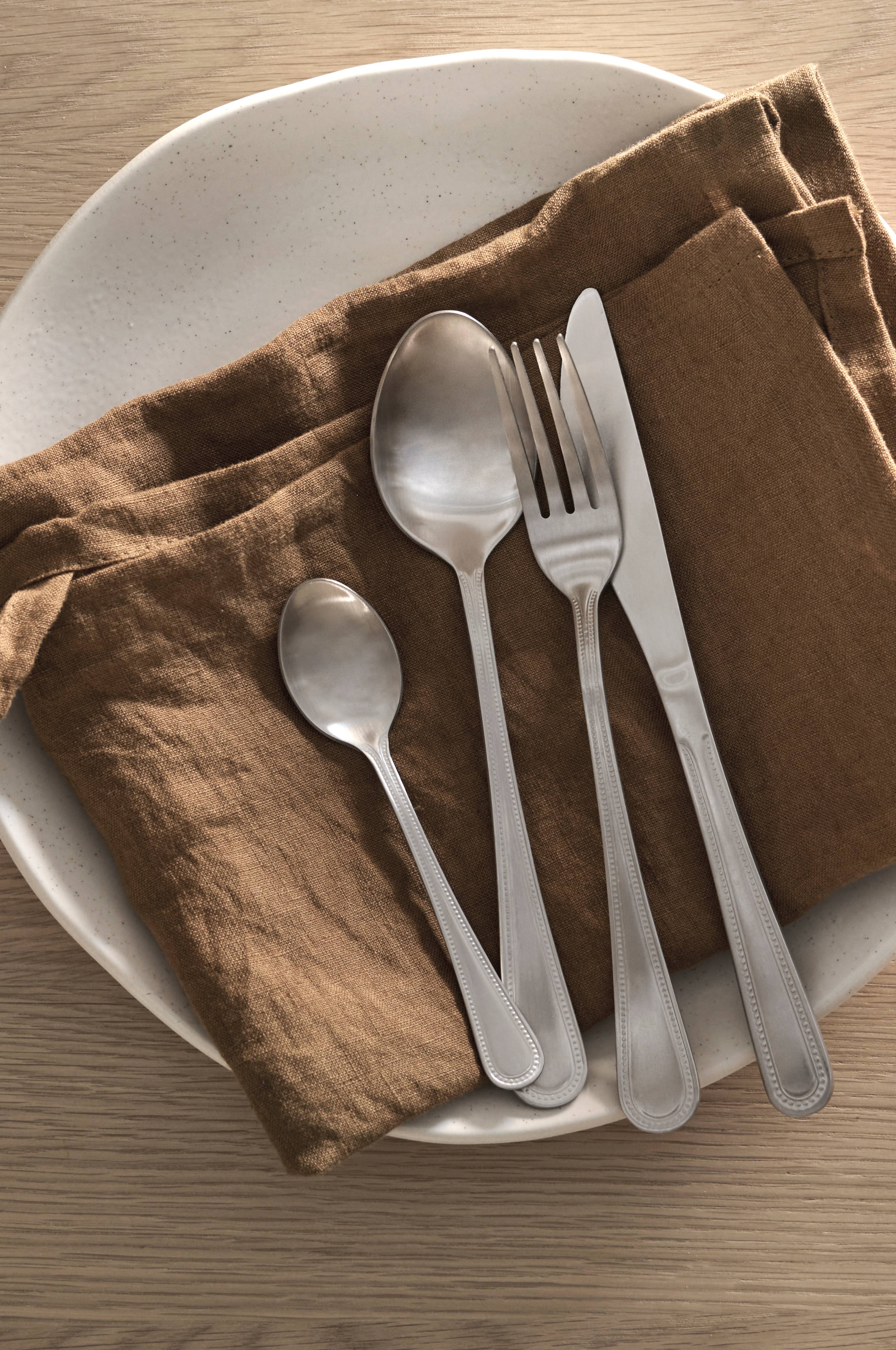16-osainen aterinsetti ruostumatonta terästä 18/0. Voidaan pestä astianpesukoneessa. Setin sisältö: 4 veistä, pituus n. 21,5 cm 4 haarukkaa, pituus n. 20 cm 4 ruokalusikkaa, pituus n. 20 cm 4 teelusikkaa, pituus n. 14 cm