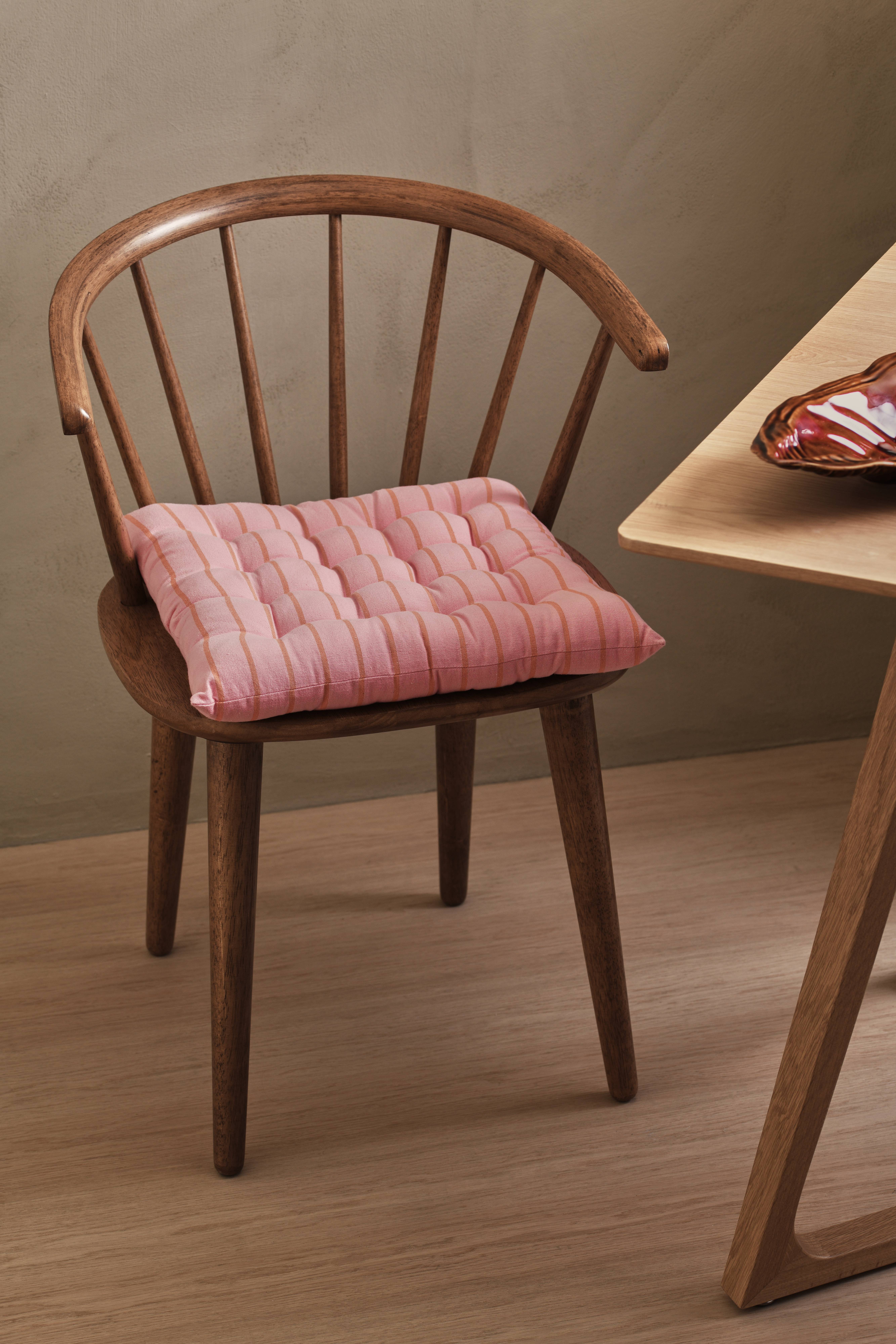 Istuintyyny, joka sopii täydellisesti sekä keittiön tuoliin että ulkokalusteeseen. Puuvillakangas, jossa koristeellisesti sijoitetut pistot. Lankavärjätty. Täyte polyesteriä. Korkeus n. 5 cm.