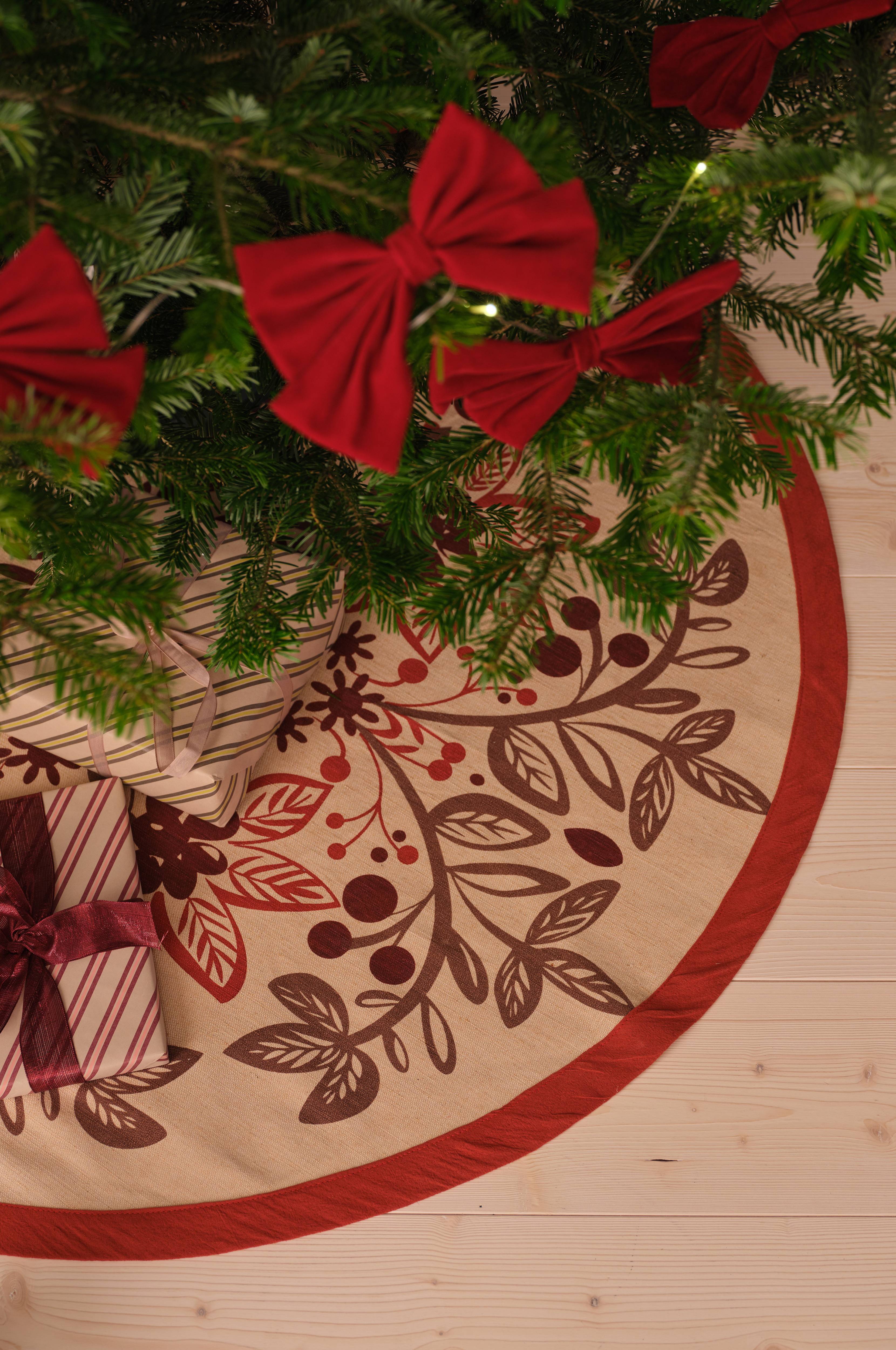 • Pyöreä joulukuusenmatto juutista• Koristeellinen kuviointi