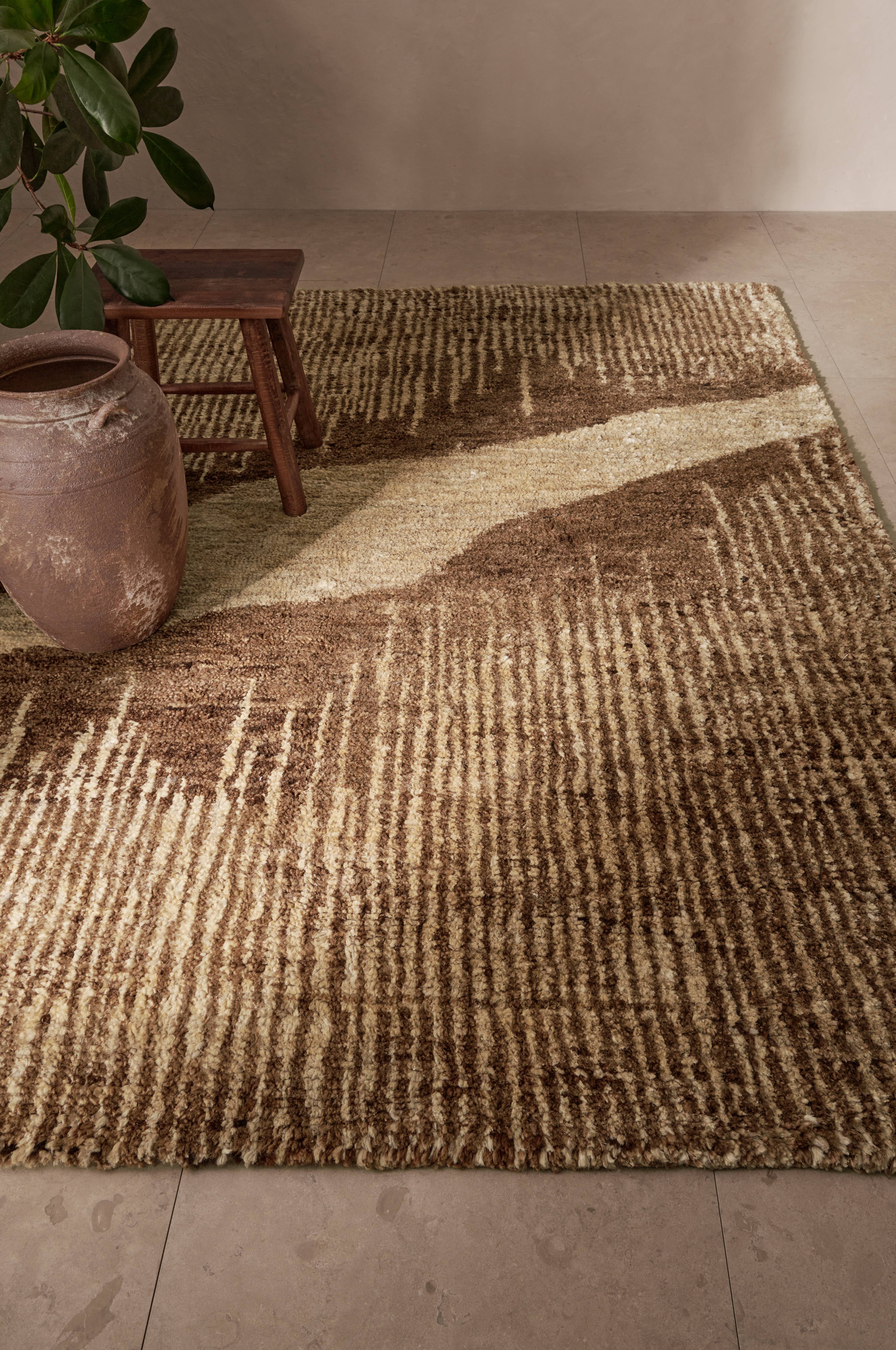 Käsin solmittu matto pehmeää ja kauniisti hohtavaa juuttia.