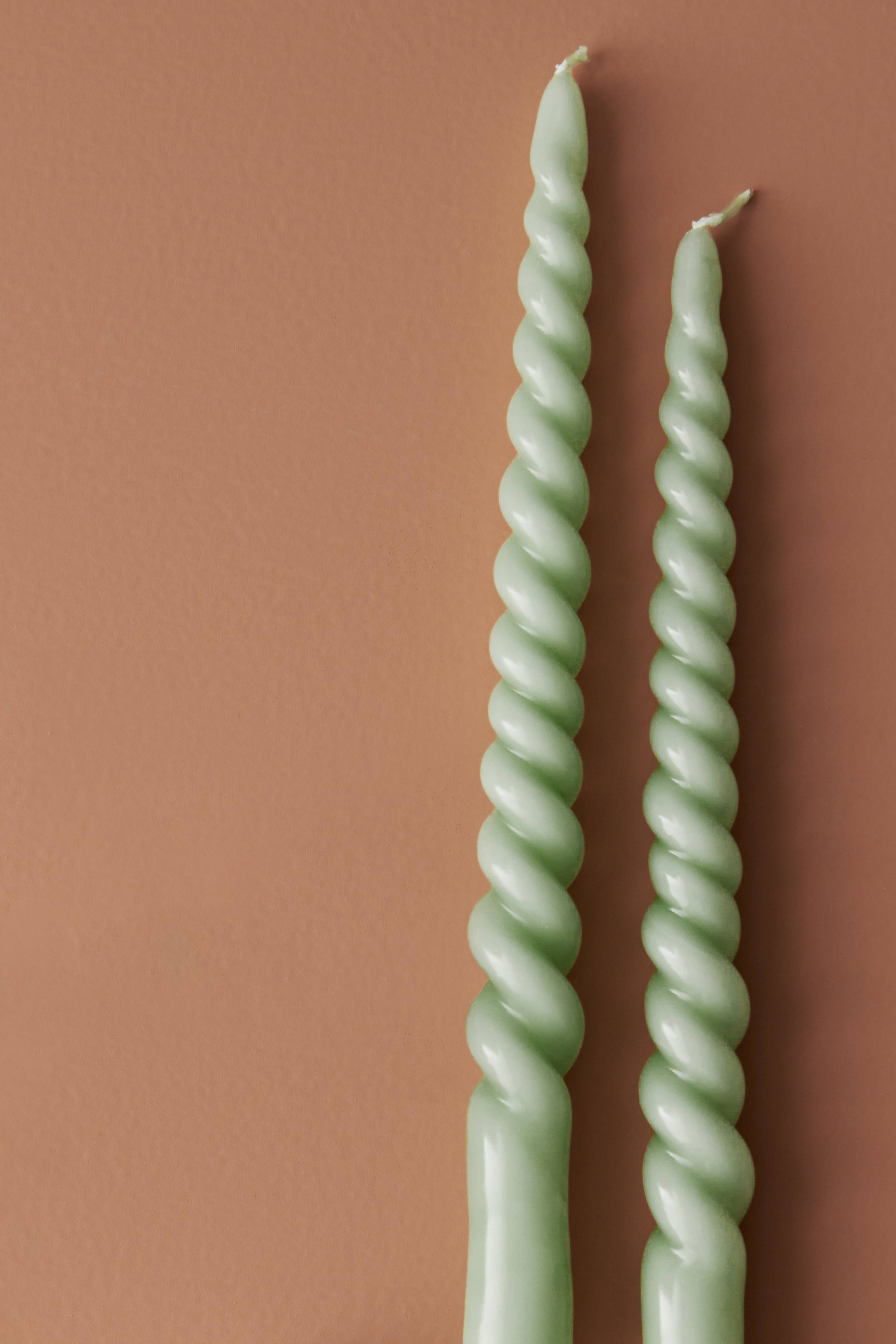 Kierretyt kynttilät, 2/pakk. Korkeus 29 cm, halkaisija 2,2 cm. Paloaika n. 9 tuntia. Kynttilät ovat 100% parafiinia. Parafiinia käytetään steariinin sijaan, koska se on pehmeämpi materiaali, jolloin kynttilän voi muotoilla ja kiertää. Tämä ei onnistu steariinilla, joka on liian kovaa kierrettäväksi.