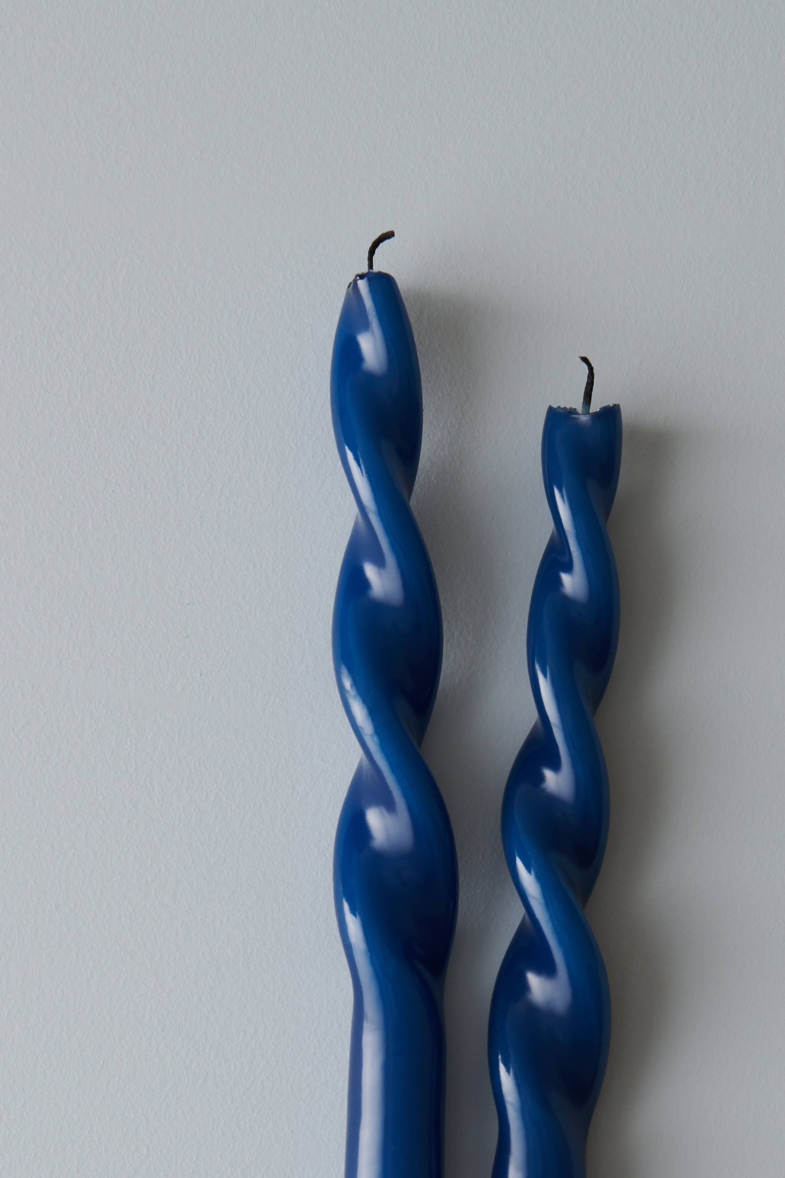Kierretyt, litteät kynttilät, 2/pakkaus. Korkeus 29 cm, halkaisija 2,2 cm. Paloaika n. 9 tuntia. Kynttilät ovat 100% parafiinia. Parafiinia käytetään steariinin sijaan, koska se on pehmeämpi materiaali, jolloin kynttilän voi muotoilla ja kiertää. Tämä ei onnistu steariinilla, joka on liian kovaa kierrettäväksi.
