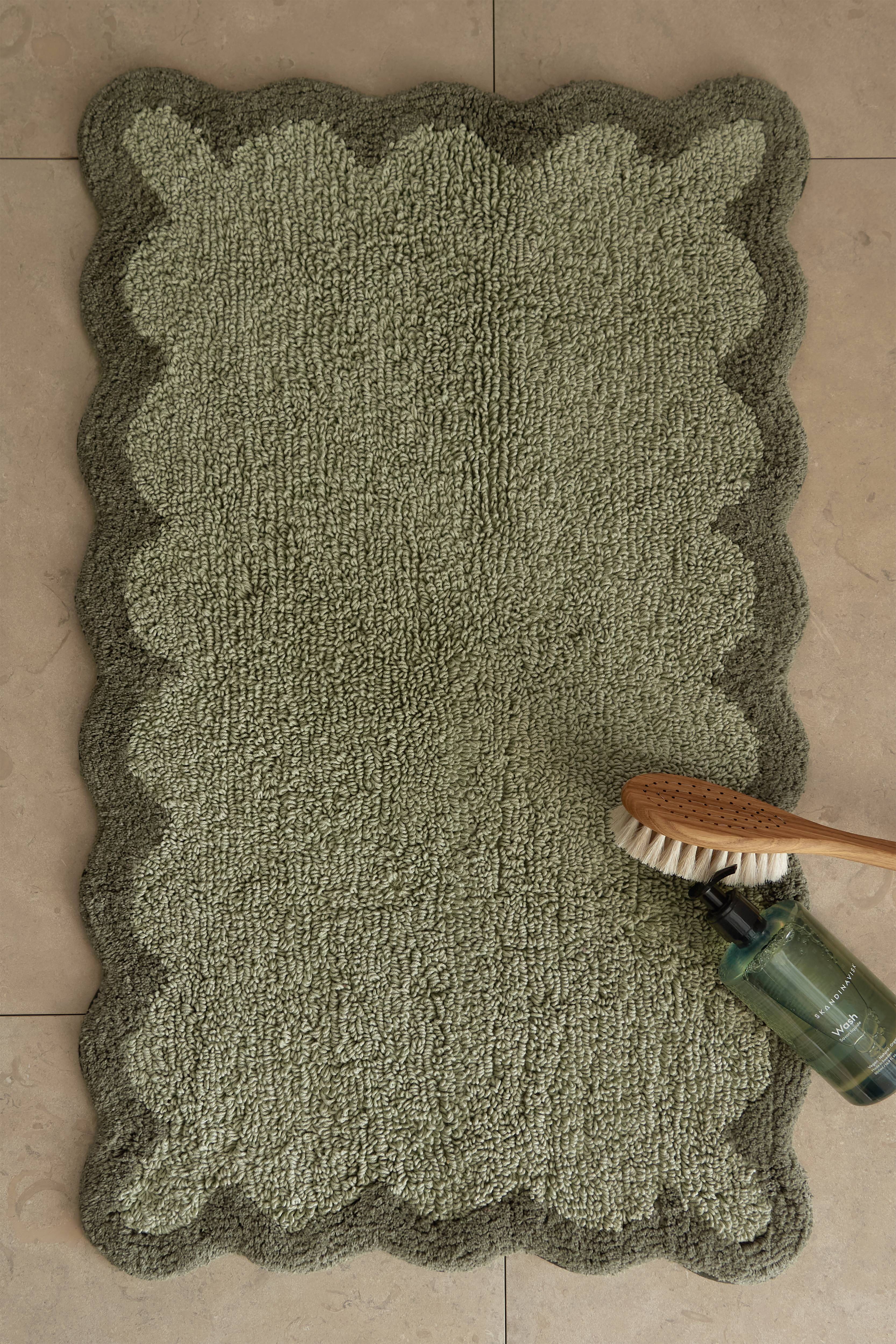 • Pehmeä, tupsukoristeinen kylpyhuoneen matto puuvillasta