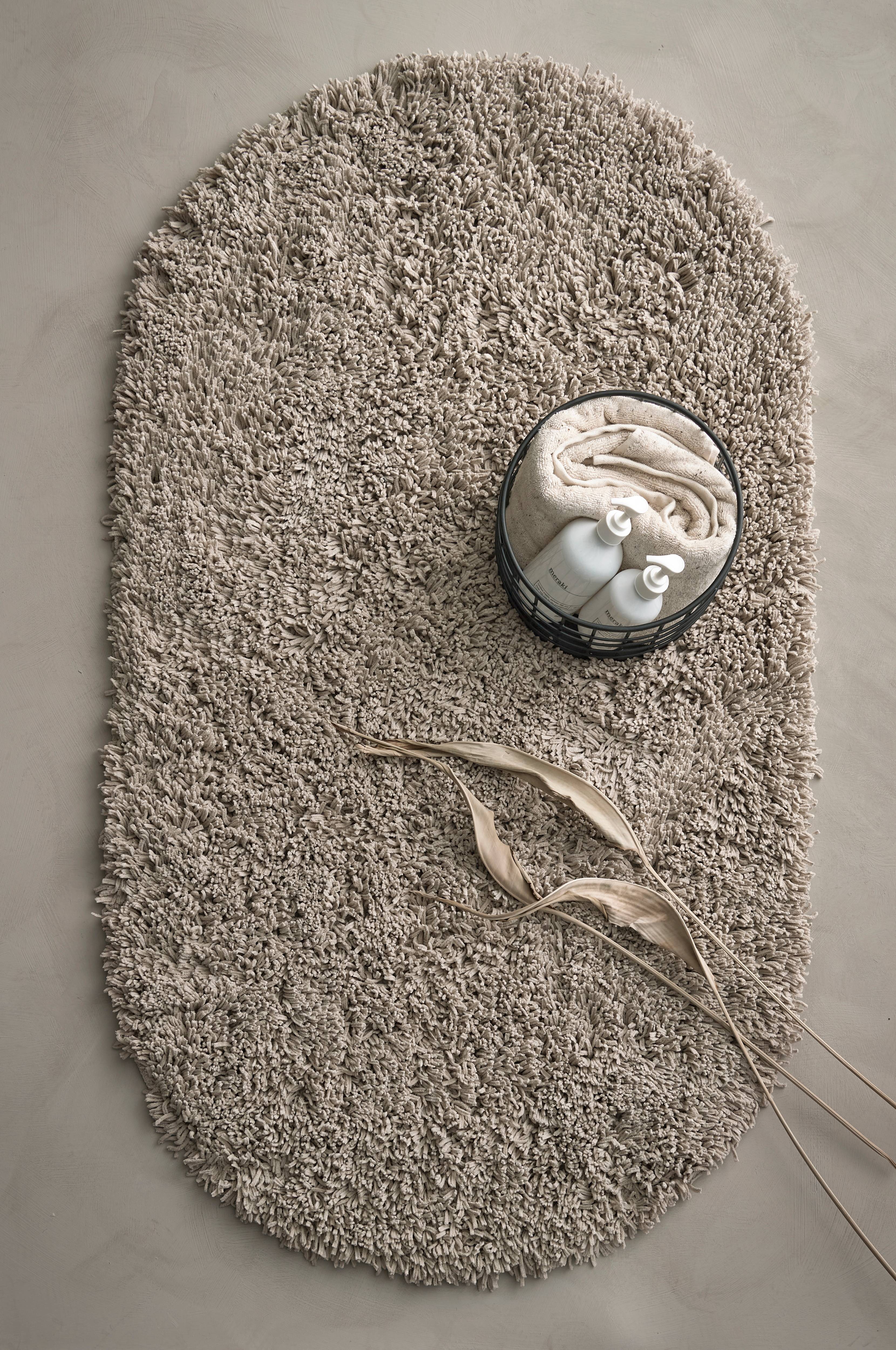Kylpyhuonematto pehmeää kierrätettyä chenillelankaa.