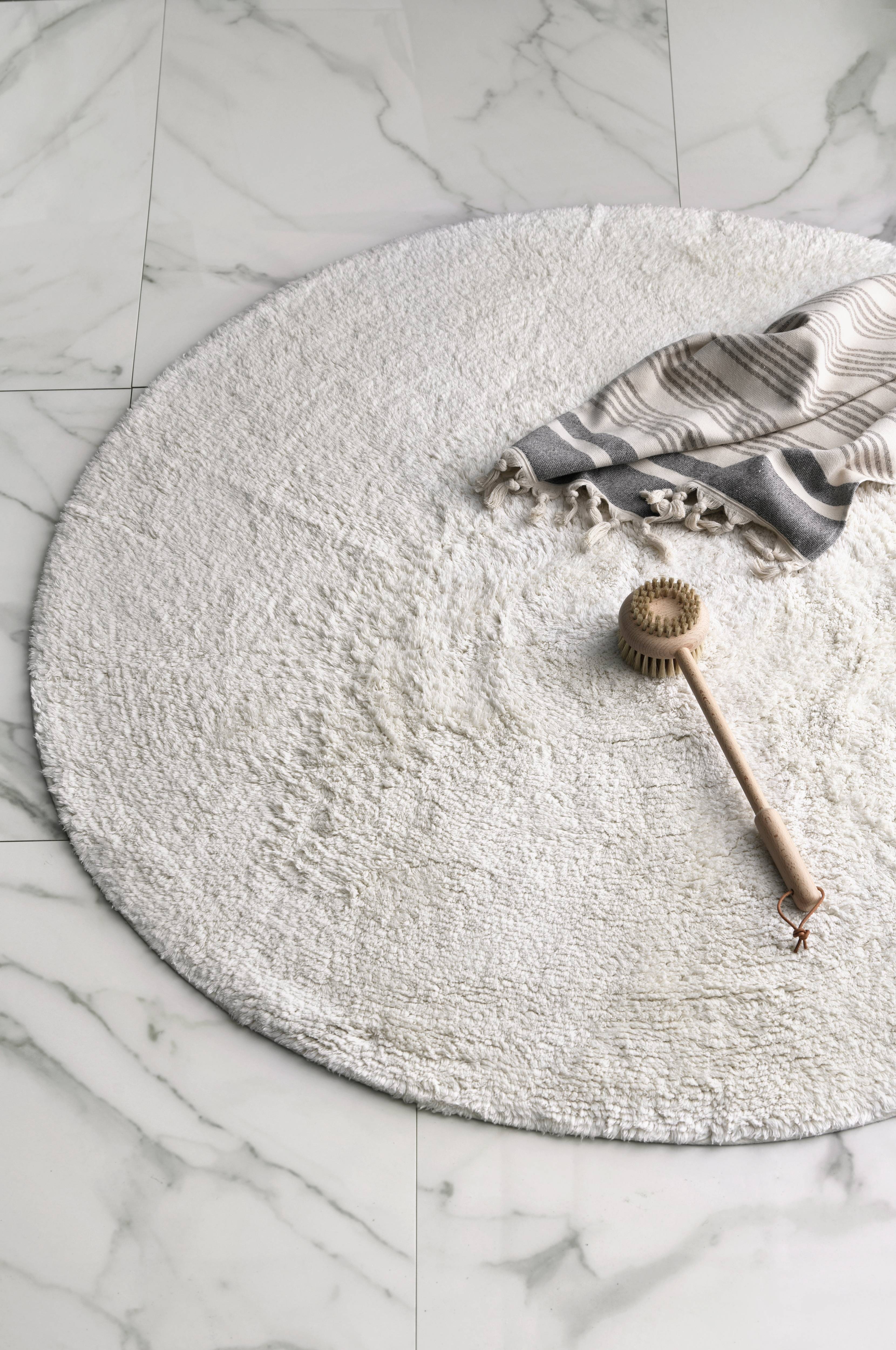 Pyöreä matto pehmeää puuvillaa. Ø 120 cm.